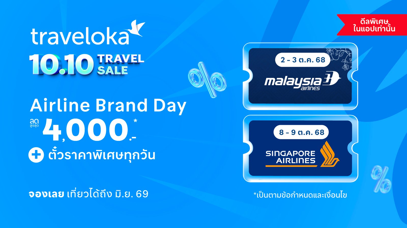 กรุงเทพฯ 7 ตุลาคม 2568 — นักท่องเที่ยวชาวไทยกำลังมองหาประสบการณ์การเดินทางที่น่าจดจำ ไม่ว่าจะเป็น การฉลองส่งท้ายปีที่กรุงลอนดอน การผจญภัยครั้งพิเศษที่นครนิวยอร์ก การสัมผัสวัฒนธรรมอันหลากหลายในภูมิภาคเอเชียตะวันออกเฉียงใต้ เพื่อทำให้การท่องเที่ยวในฝันเป็นจริงได้ง่ายขึ้น Traveloka แพลตฟอร์มการท่องเที่ยวครบวงจรชั้นนำแห่งเอเชียตะวันออกเฉียงใต้ ได้จับมือกับสายการบินพันธมิตร Malaysia Airlines และ Singapore Airlines เปิดตัว Airline Brand Day ภายใต้แคมเปญ 10.10 Travel Sale โดยมอบส่วนลดสูงสุดถึง 40% สำหรับเที่ยวบินระยะไกลและเที่ยวบินภายในภูมิภาคที่ร่วมรายการ