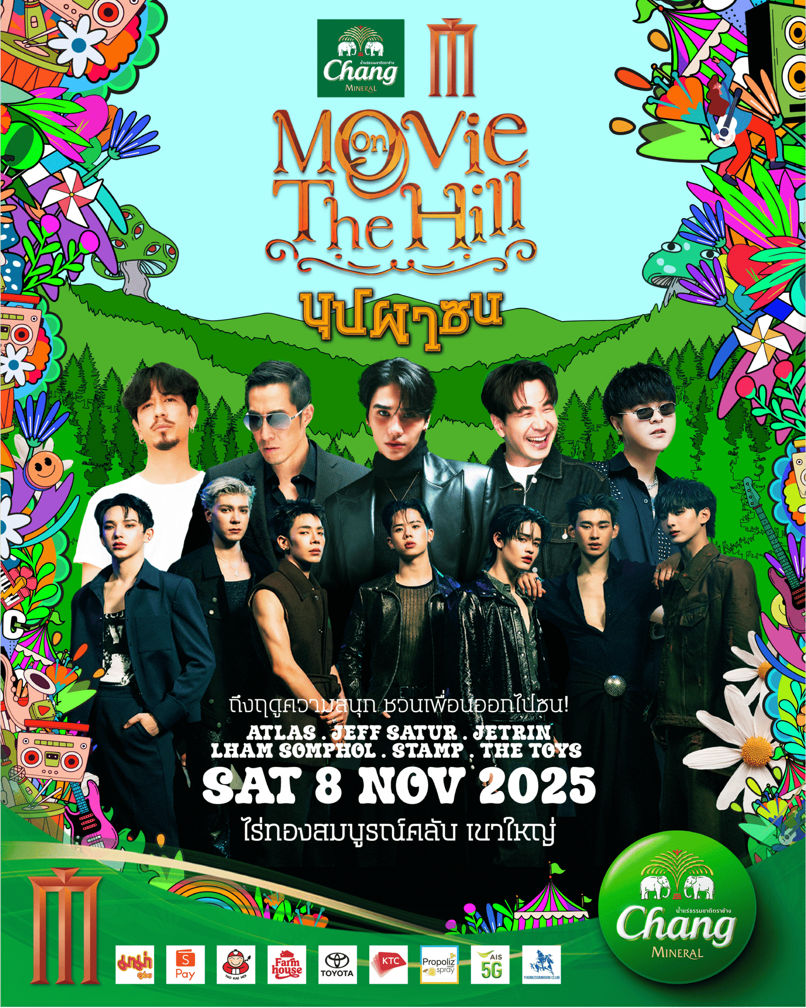 เตรียมตัวให้พร้อม! กลับมาอีกครั้งกับเทศกาลดนตรีและภาพยนตร์กลางแจ้งสุดยิ่งใหญ่ “Movie on the Hill” ครั้งที่ 6 ที่น้ำแร่ธรรมชาติตราช้าง ร่วมกับ บริษัท เมเจอร์ ซีนีเพล็กซ์ กรุ้ป จำกัด (มหาชน) ขนความสนุกแบบจัดเต็มมาเอาใจเพื่อน ๆ ในคอนเซ็ปต์สุดครีเอทีฟ “บุปผาซน” ที่สะท้อนสีสัน ความสุข และพลังแห่งการปลดปล่อยความสนุกอย่างเต็มที่ โดยในปีนี้จัดหนักด้วยไลน์อัปศิลปินสุดฮอต ไม่ว่าจะเป็น ATLAS, JEFF SATUR, THE TOYS, JETRIN, STAMP และ LHAM SOMPHOL ที่จะมาร่วมกันสร้างความสนุกสนานบนเวทีเดียวกัน และการฉายภาพยนตร์กลางแจ้งสุดประทับใจเรื่อง “Long Live Love” ในบรรยากาศสุดชิลที่ ไร่ทองสมบูรณ์คลับเขาใหญ่วันเสาร์ที่ 8 พฤศจิกายน 2568