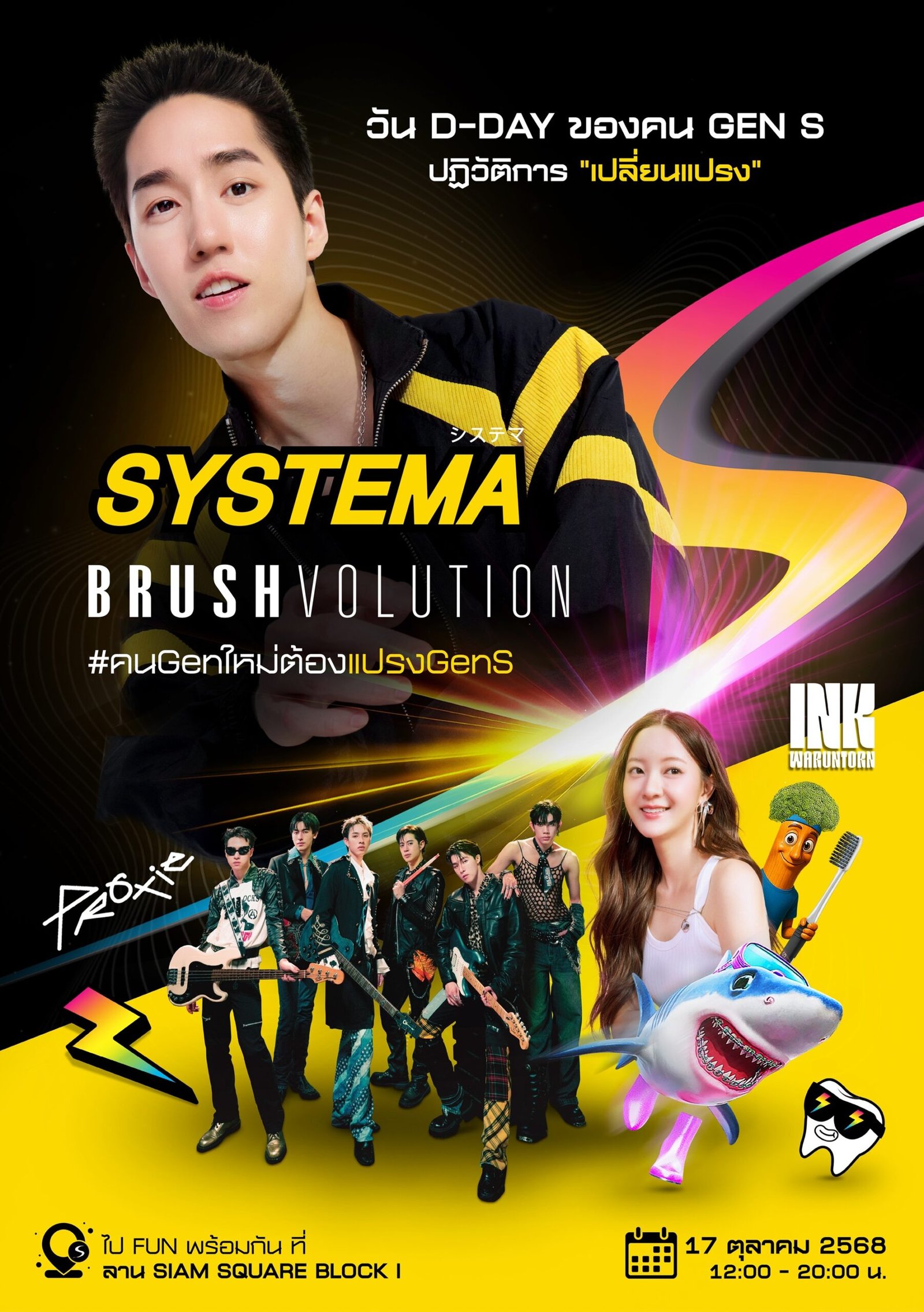 SYSTEMA ชวนมาปฏิวัติการ “เปลี่ยนแปรง”สุดยิ่งใหญ่ ที่งาน “SYSTEMA BRUSHVOLUTION” ครั้งแรกกับการเปิดตัวแปรงสีฟัน Gen S ลุคใหม่ทั้งซีรีส์ รวม 12 รุ่น พบกับพรีเซนเตอร์สุดหล่อ “ต่อ-ธนภพ” และมินิคอนเสิร์ตแบบจัดเต็มกว่า 2 ชั่วโมงจาก “อิ๊งค์-วรันธร” และวง “PROXIE” พร้อมเล่นเกมสนุกๆ ลุ้นรับ Exclusive SYSTEMA Box Set พร้อมกิจกรรมมาร่วมค้นหาแปรงสีฟันที่แมทซ์กับตัวคุณ ในวันศุกร์ที่ 17 ตุลาคม 2568 นี้ตั้งแต่เวลา 12.00-20.00 น. ณลานสยามสแควร์บล็อกไอ อย่าลืมจัดเต็มธีมชุดสีดำ-เหลือง-ซิลเวอร์ แล้วมาเป็น #คนGenใหม่ต้องแปรงGenS ไปด้วยกัน