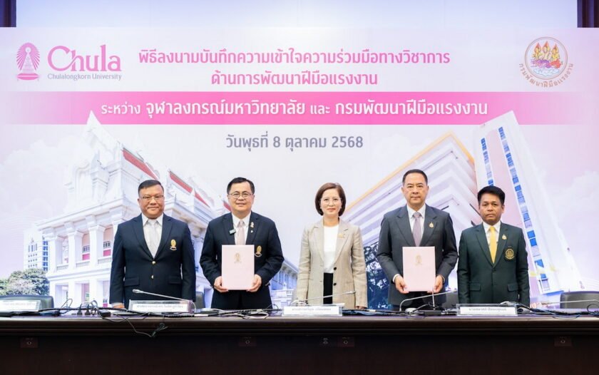 จุฬาลงกรณ์มหาวิทยาลัยร่วมกับกระทรวงแรงงานโดยกรมพัฒนาฝีมือแรงงานลงนามบันทึกความเข้าใจความร่วมมือทางวิชาการด้านการพัฒนาฝีมือแรงงานเพื่อยกระดับศักยภาพกำลังคนของประเทศให้สอดคล้องกับความต้องการของตลาดแรงงานในยุคเทคโนโลยีเปลี่ยนผ่านโดยมีนางสาวตรีนุช เทียนทอง รัฐมนตรีว่าการกระทรวงแรงงานเป็นประธานในพิธีลงนามและกล่าวแสดงความยินดีจากนั้นศ.ดร.วิเลิศ ภูริวัชร อธิการบดีจุฬาลงกรณ์มหาวิทยาลัยและนายสมาสภ์ ปัทมะสุคนธ์ รองปลัดกระทรวงแรงงานรักษาราชการแทนปลัดกระทรวงแรงงานลงนามในบันทึกความเข้าใจความร่วมมือทางวิชาการด้านการพัฒนาฝีมือแรงงานโดยได้รับเกียรติจากรศ.ดร.ศิริเดช สุชีวะ รองอธิการบดีจุฬาฯ และนายภัทรวุธเภอแสละรองอธิบดีกรมพัฒนาฝีมือแรงงานร่วมลงนามเป็นสักขีพยาน