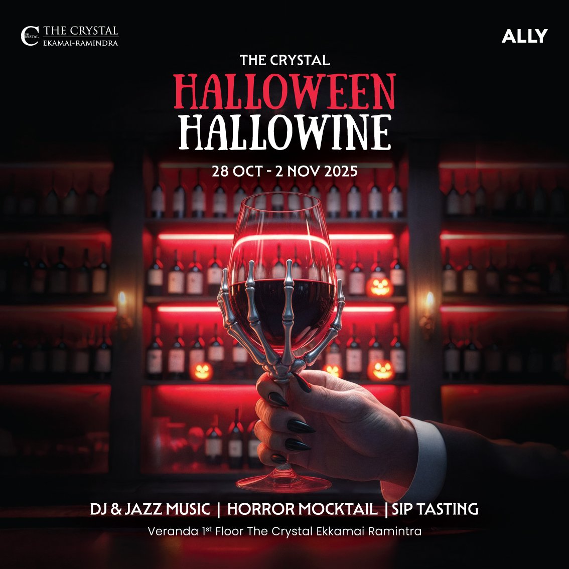 ศูนย์การค้า เดอะคริสตัลเอกมัย–รามอินทรา ชวนสายไวน์ สายคราฟ และคนรักบรรยากาศสุดเก๋ มาสัมผัสความสนุกในค่ำคืนแห่งความหลอนสุดหรู กับงาน “Halloween Hallowine” ภายใต้คอนเซ็ปต์ “วิหารแห่งท่านแดร็กคิวล่า” ที่รวบรวมไวน์คุณภาพเยี่ยมจากร้านค้าชั้นนำกว่า 100 รายการ อาทิ Ciao Pizza, Valentino, Cellar, Playlist และ Godfather ให้คุณได้เลือกจิบและช้อปแบบเอ็กซ์คลูซีฟ พร้อมสัมผัสความผ่อนคลายท่ามกลางเสียงดนตรี Jazz และดีเจสุดชิค ในวันที่ 28 ตุลาคม – 2 พฤศจิกายน 2568 ณ บริเวณ ลานกิจกรรม Veranda ชั้น 1