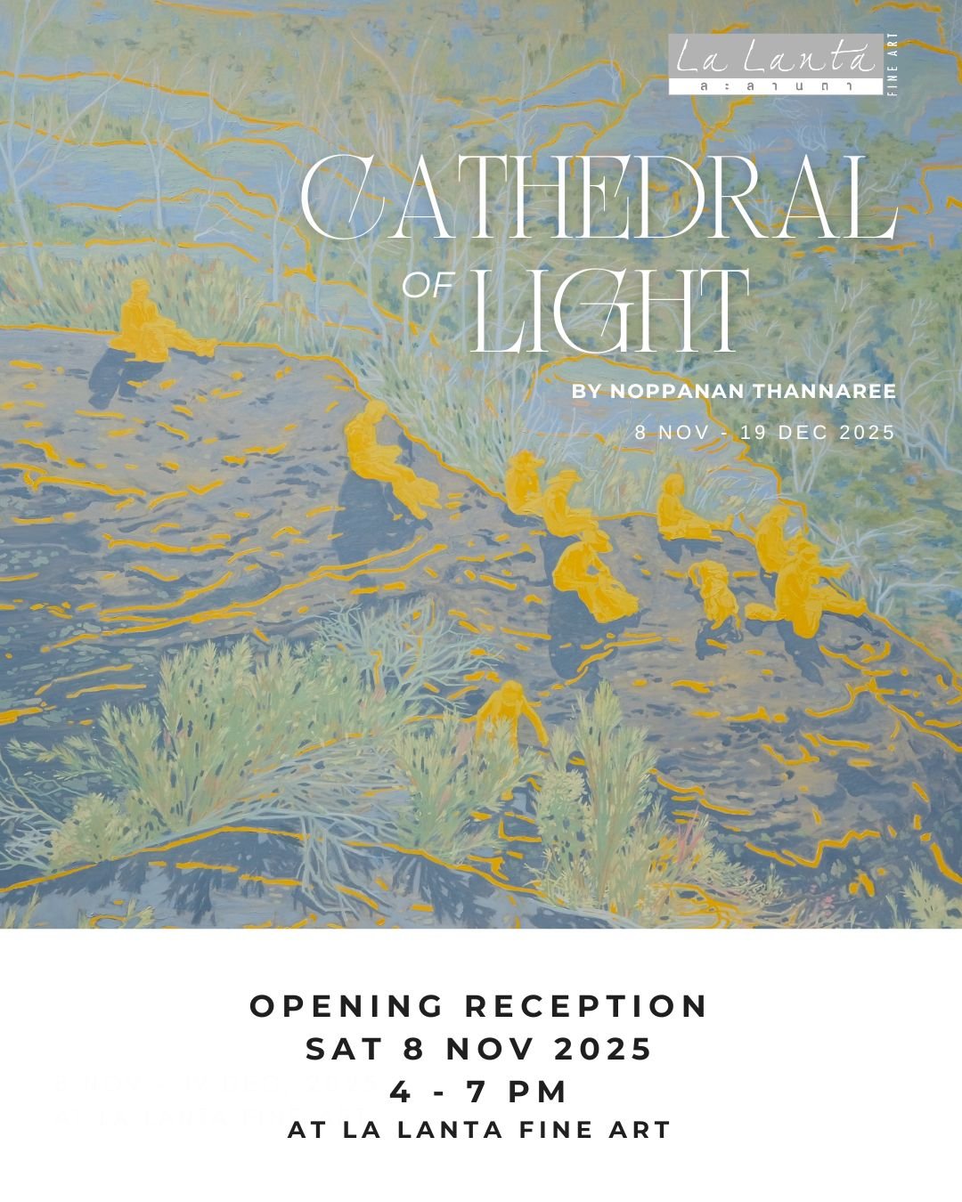 ละลานตา ไฟน์อาร์ต ภูมิใจนำเสนอ นิทรรศการ Cathedral of Light โดย นพนันท์ ทันนารี ศิลปินผู้ถ่ายทอดความประทับใจต่อ “แสง” ผ่านชุดผลงานจิตรกรรมที่สะท้อนเอกลักษณ์เฉพาะตัวของแสงอาทิตย์ พลังธรรมชาติที่เป็นทั้งต้นกำเนิดแห่งชีวิตบนโลก และสัญลักษณ์ของความเชื่อมโยงระหว่างมนุษย์กับโลกธรรมชาติ จึงเป็นทั้งคุณค่าและความหมายที่หล่อเลี้ยงวัฒนธรรมหลากหลาย รวมถึงเป็นสิ่งศักดิ์สิทธิ์สำหรับศิลปินเอง โดยมีแนวคิดเรื่องความสัมพันธ์ระหว่างธรรมชาติและมนุษย์ ระหว่างนามธรรมและรูปธรรม เป็นแกนหลักในการสร้างสรรค์ผลงานศิลปะที่สะท้อนความงดงามของแสง
