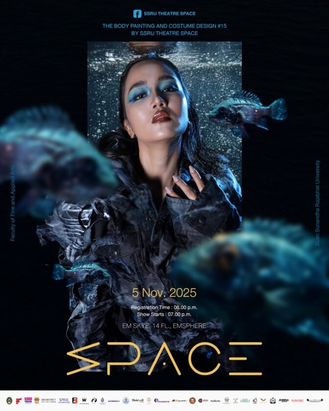 แขนงวิชาศิลปะการละครและความเป็นผู้ประกอบการสร้างสรรค์ คณะศิลปกรรมศาสตร์ มหาวิทยาลัยราชภัฏสวนสุนันทา ขอเชิญร่วมเป็นส่วนหนึ่งของท้องทะเลในงาน “The Body Painting and Costume Design Showcase 2025” ภายใต้แนวคิด “Blue Symphony – จังหวะแห่งห้วงมหาสมุทร” ซึ่งจะจัดแสดงในวันที่ ๕ พฤศจิกายน ๒๕๖๘ เวลา ๑๙.๐๐ น. เป็นต้นไป ณ EM SKYE ชั้น ๑๔ ศูนย์การค้าเอ็มสเฟียร์ เขตคลองเตย สำรองที่นั่งได้แล้ววันนี้ ทางเว็บไซต์ : https://www.ticketmelon.com/ssru-theatre-space/BLUESYMPHONY/