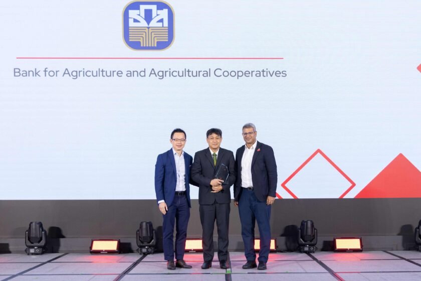 ธนาคารเพื่อการเกษตรและสหกรณ์การเกษตร รับรางวัล Red Hat APAC Innovation Award 2025 สาขา Digital Transformation และ Hybrid Cloud Infrastructure ภาพจากซ้ายไปขวา: คุณอัลเบิร์ต ไช ผู้จัดการทั่วไปประจำภูมิภาคเอเชียตะวันออกเฉียงใต้ ยกเว้นสิงคโปร์ (RoSEA) ของเร้ดแฮท, คุณทายาท ภุมรินทร์ รองผู้อำนวยการฝ่ายปฏิบัติการเทคโนโลยีและสารสนเทศของ ธ.ก.ส., คุณเปรม ปาวัน รองประธานและผู้จัดการทั่วไปประจำภูมิภาคเอเชียตะวันออกเฉียงใต้และเกาหลี (SEAK) ของเร้ดแฮท