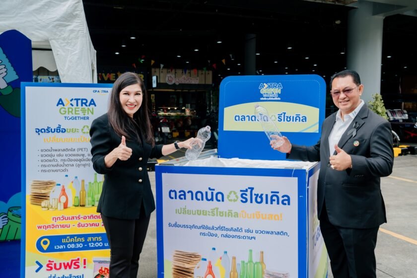 บริษัท ซีพี แอ็กซ์ตร้า จำกัด (มหาชน) ผู้ดำเนินธุรกิจค้าส่งค้าปลีก ‘แม็คโคร–โลตัส’ เดินหน้าสร้างความยั่งยืน ผ่านแคมเปญ “AXTRA Green Together” ภายใต้แนวคิด ‘พลังเล็ก ๆ เพื่อโลกที่ยั่งยืน ผ่านการคัดแยกขยะ โดยล่าสุด ร่วมกับ บริษัทเวสท์บายเดลิเวอรี่จำกัด เปิดตัวกิจกรรม “Weekend Recycle Market ตลาดนัดรีไซเคิล ‘รักษ์โลกสร้างรายได้’” เพื่อส่งเสริมการคัดแยกขยะอย่างถูกวิธี ทุกวันเสาร์-อาทิตย์ จนถึงสิ้นปี 2568 ที่แม็คโครและโลตัส 10 สาขาในกรุงเทพฯ พร้อมกันนี้ ยังได้จัดทำโครงการ “RVM by CP AXTRA x Wastebuy” เพื่อติดตั้งเครื่องรับคืนบรรจุภัณฑ์อัตโนมัติ (Reverse Vending Machine – RVM) ในการอำนวยความสะดวกให้ประชาชนสามารถนำขวดพลาสติก มาส่งคืนได้ตลอดเวลา พร้อมรับคะแนนสะสมผ่านระบบดิจิทัล โดยขวดที่เก็บรวบรวมจะถูกนำเข้าสู่กระบวนการรีไซเคิลต่อเนื่อง เพื่อสร้างเศรษฐกิจหมุนเวียนและทรัพยากรที่ยั่งยืน โดยมี นายพรพรหม วิกิตเศรษฐ์ ผู้บริหารด้านความยั่งยืนของกรุงเทพมหานคร และ ที่ปรึกษาของผู้ว่าราชการกรุงเทพมหานคร และ ดร.ผานิต รัตสุข ผู้อำนวยการกองจัดการกากของเสียและสารอันตราย กรมควบคุมมลพิษ ให้เกียรติร่วมงานเปิดตัวกิจกรรม