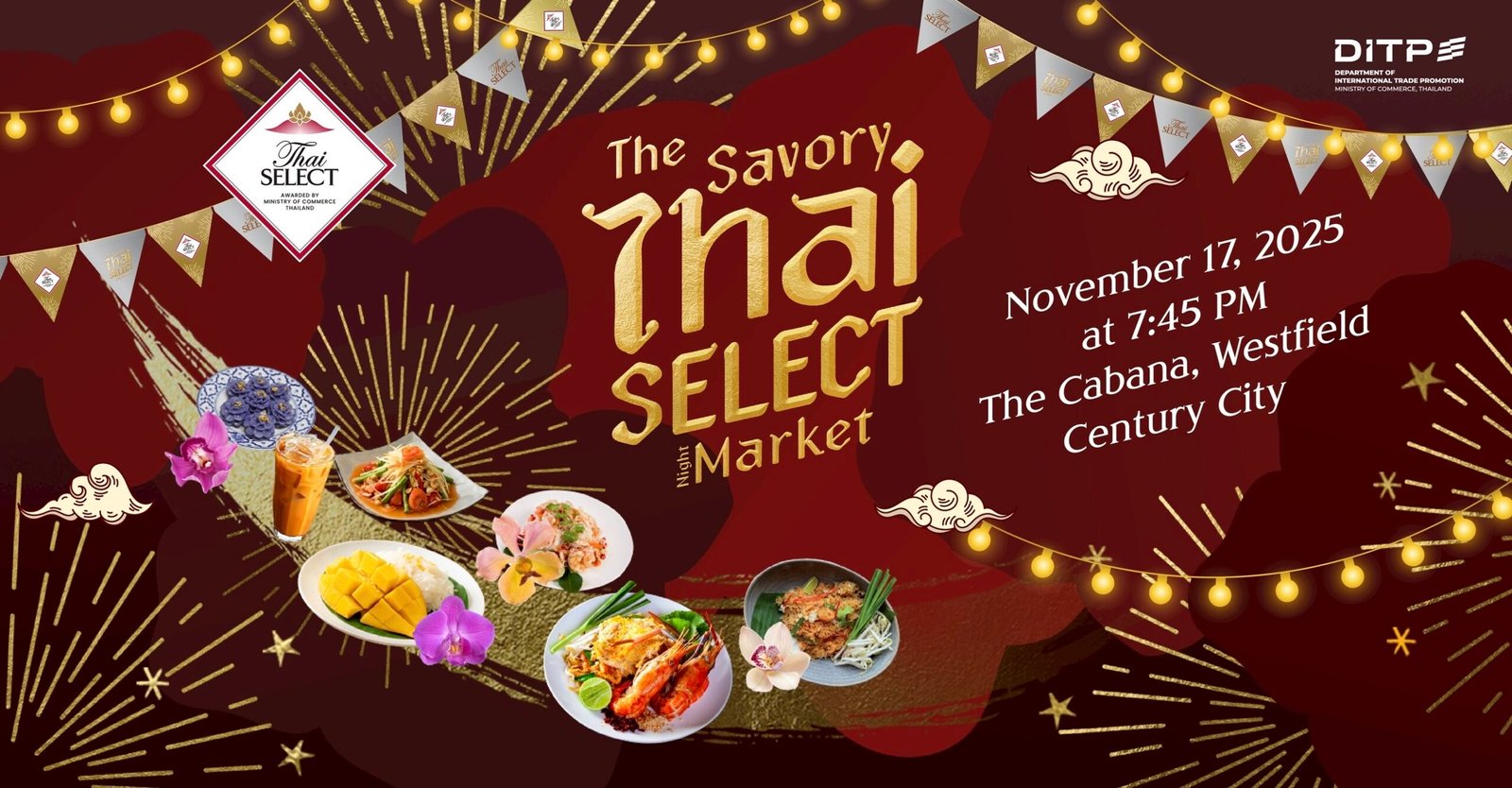 กระทรวงพาณิชย์ โดย กรมส่งเสริมการค้าระหว่างประเทศ เตรียมจัดงาน “THAI SELECT FESTIVAL” ภายใต้โครงการประชาสัมพันธ์ยกระดับสร้างการรับรู้อาหารไทยและตราสัญลักษณ์ Thai SELECT ในตลาดสหรัฐอเมริกาฝั่งตะวันตก เพื่อสานต่อภารกิจ Soft Power อาหารไทย สู่เวทีโลก ผ่านกลยุทธ์การสื่อสารเชิงสร้างสรรค์ที่ผสานศิลปะ วัฒนธรรม และความอร่อยในแบบไทยแท้ ในโอกาสนี้ กราบทูลเชิญ ทูลกระหม่อมหญิงอุบลรัตนราชกัญญาสิริวัฒนาพรรณวดีเสด็จเป็นองค์ประธานในพิธีเปิดงานณ The Cabana @ Westfield Century City (Los Angeles, USA) ในวันที่ 17 พฤศจิกายน 2568
