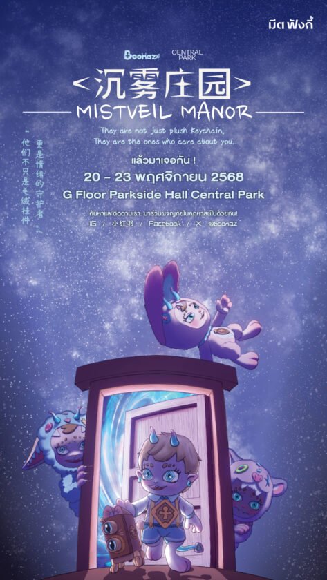 สาวกอาร์ตทอยได้กรี๊ดสนั่น! เมื่อ Boonaz (บูนาซ) แบรนด์คาแรกเตอร์ชื่อดัง มากุมหัวใจชาวไทยด้วยคาแรกเตอร์มอนสเตอร์ตัวน้อยแสนลึกลับ เปิดคอลเลกชันใหม่ “Mistveil Manor Plush Series” ที่ได้ศิลปินระดับโลกและไอคอนอย่าง “แบมแบม กันต์พิมุกต์ ภูวกุล” (BamBam GOT7) มาร่วมถ่ายทอดแนวคิด “The Courage to Express Yourself” (ความกล้าที่จะเป็นตัวเอง) พร้อมเปิดประสบการณ์สุดพิเศษครั้งแรกในประเทศไทย กับ Limited Pop-Up Store ใจกลางกรุงเทพฯ จัดเต็มทั้งกิจกรรมสุดสนุกและสินค้าสุดเอ็กซ์คลูซีฟ ณ พาร์คไซด์ฮอลล์ชั้น G, เซ็นทรัลพาร์คระหว่างวันที่ 20 – 23 พฤศจิกายน 2568 นี้เท่านั้น
