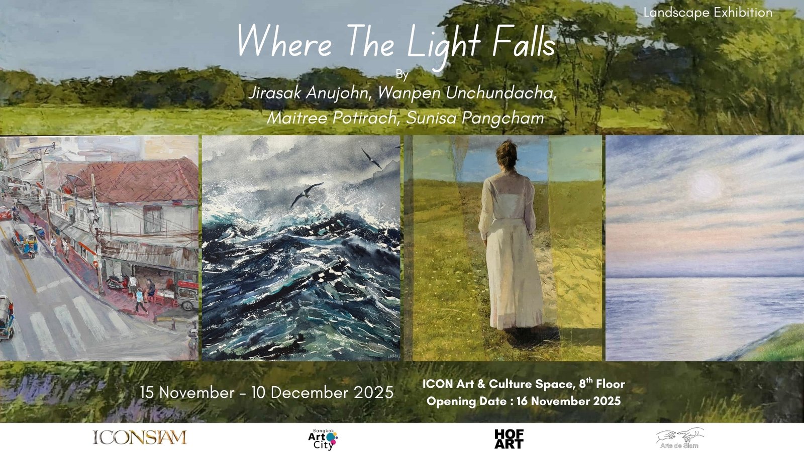 ทุกชิ้นงานร่วมกันถักทอเป็นบทสนทนาว่าด้วย “แสง” ซึ่งไม่เพียงเผยให้เห็นรูปร่างของสิ่งที่อยู่ตรงหน้า แต่ยังสะท้อนอารมณ์และจิตใจของผู้มองในแต่ละช่วงเวลา “Where The Light Falls” จึงไม่ใช่เพียงการมองเห็นภาพทิวทัศน์ แต่คือการสัมผัสพลังของแสงที่หลอมรวมธรรมชาติ เวลา และความรู้สึกไว้ในผืนผ้าใบ และบนกระดาษ นิทรรศการศิลปะ Where the Light Falls เปิดให้เข้าชมทุกวันโดยไม่มีค่าใช้จ่าย จัดแสดงระหว่างวันที่ 16 พฤศจิกายน 2568 – 10 ธันวาคม 2568 ที่ ICON Art & Culture Space ชั้น 8, ไอคอนสยาม