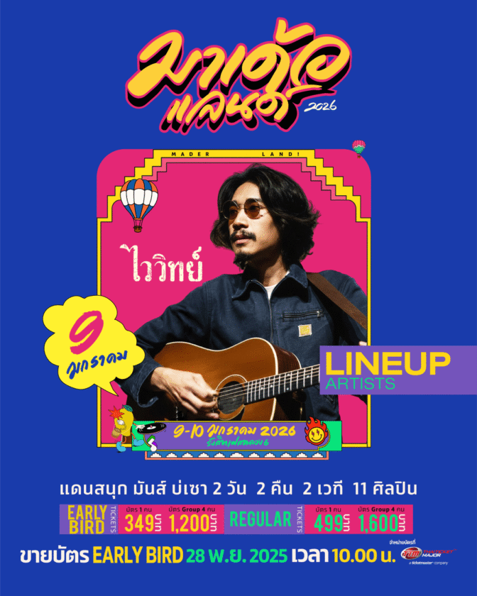 เตรียมตัวให้พร้อม! ห้ามพลาดกับงาน “มาเด้อแลนด์” ปลดปล่อยความสนุกกับบรรยากาศสุดชิล ยืน นั่ง เวทีไหนก็ฟิน แล้วมาเจอกันในวันที่ 9-10 มกราคม 2569 ที่รังสิตเฟส คลอง 6 สำหรับผู้ที่สนใจเริ่มกดบัตร EARLY BIRD (เข้าได้ทั้ง 2 วัน) บัตรเดี่ยว 349 บาท / บัตรกลุ่ม (4 คน) 1,200 บาทจำกัด 3,000 ใบเท่านั้นเปิดขายวันศุกร์ที่ 28 พฤศจิกายน 2568 เวลา 10.00 น.เป็นต้นไปที่ Thaiticketmajor ทุกช่องทาง สอบถามรายละเอียดได้โซเชียลทุกช่องทางที่ Ninja Perfection