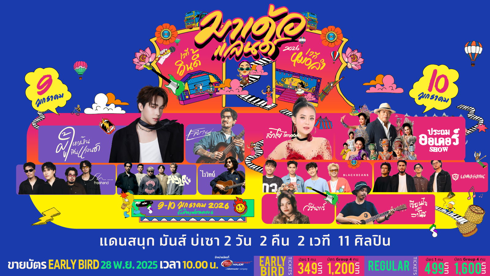 –เวทีที่ 2 (อินดี้) รวมทัพศิลปินมากฝีมือ อาทิ “เล็กรัชเมศฐ์” แชมป์ The Voice Thailand เจ้าของเพลง ใจเป็นนาย กายเป็นบ่าว เพลงดังหลายร้อยล้านวิว, “ไววิทย์” นักร้องและนักแต่งเพลงเพื่อชีวิตยุคใหม่ที่ยังคงความคลาสสิก, “Freehand” วงอินดี้เจ้าของเพลงฮิต ขอให้เธอใจดี และปิดท้ายด้วยการแจ้งเกิดของ “Ayra’s (ไอย์ลา‘ส์)” วงนักศึกษาจากมหาวิทยาลัยกรุงเทพที่เก็บเกี่ยวประสบการณ์จากการเล่นดนตรีกลางคืน มีซิงเกิลฮิต วิ่งออกไปด้วยความไวสองมัค