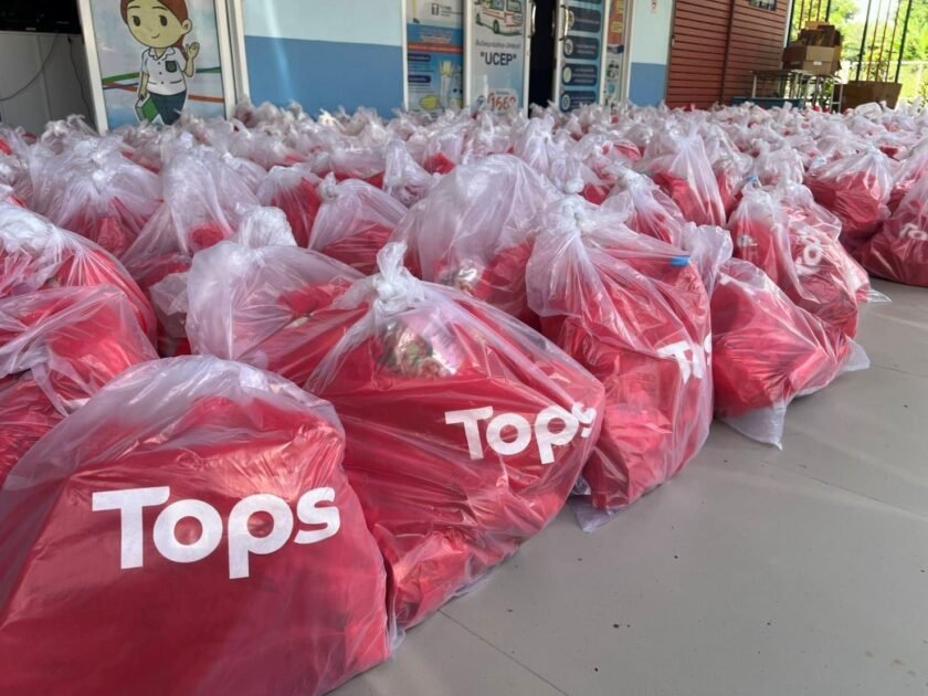 - จุดบริการ “รวมพลังน้ำใจช่วยชาวใต้” เพื่อกระจายถุงปันน้ำใจให้แก่ผู้ประสบภัยอย่างต่อเนื่อง โดยภายในถุงประกอบด้วยอาหารพร้อมทาน ปลากระป๋อง บะหมี่กึ่งสำเร็จรูป น้ำดื่ม และของใช้จำเป็นต่อการดำรงชีพ ท็อปส์ได้ส่งมอบถุงปันน้ำใจแล้วกว่า 13,000 ถุงรวมมูลค่า 6,500,000 บาท ครอบคลุมครัวเรือนที่ได้รับผลกระทบในพื้นที่สำคัญ พร้อมทั้งเปิดพื้นที่ภายในศูนย์ฯ ให้ประชาชนใช้เป็น จุดพักพิง และรับความช่วยเหลือได้อย่างปลอดภัย ตลอดช่วงวิกฤต