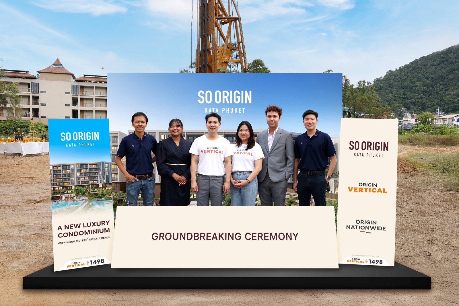 นายธนกร วุฒิพงษ์ (ที่ 3 จากซ้าย) รองประธานอาวุโสฝ่ายธุรกิจระหว่างประเทศบริษัทออริจิ้นเวอร์ติเคิลคอร์ปอเรชั่นจำกัดหรือ ORIGIN VERTICAL นำทีมพนักงานและบริษัทผู้รับเหมาก่อสร้าง ร่วมพิธีลงเสาเอกเพื่อดำเนินการก่อสร้างคอนโดมิเนียม โครงการโซออริจิ้นกะตะ (So Origin Kata) ปักหมุดเป็นแลนด์มาร์กที่อยู่อาศัยรูปแบบใหม่ใจกลางแหล่งท่องเที่ยวสำคัญของงหาดกะตะ จังหวัดภูเก็ต หนึ่งในชายหาดยอดนิยมระดับโลก และเป็นการเดินหน้าขยายพอร์ตโฟลิโอด้านอสังหาริมทรัพย์ในโซนภูเก็ตอย่างต่อเนื่อง