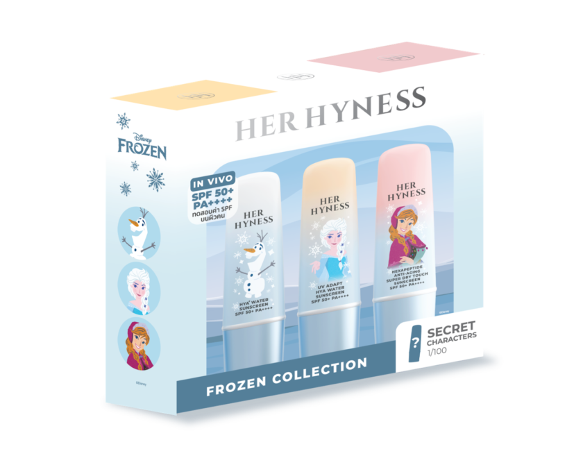 HER HYNESS Frozen Collection ถ่ายทอดลุคใหม่แบบลิมิเต็ดน่ารักน่าสะสม ให้กับกันแดด 3 สูตรยอดนิยมที่ขึ้นชื่อด้านการปกป้องผิวอย่างเต็มประสิทธิภาพ