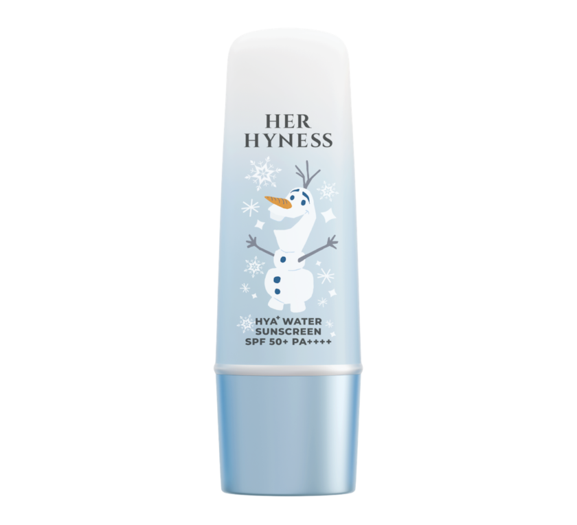 - Hya+ Water Sunscreen SPF50+ PA++++ (ขวดสีฟ้า–ขาว) กันแดดสำหรับใช้ทุกวัน เนื้อน้ำ เบาที่สุด ไม่กวนเมคอัพ มอบความสบายผิวแม้ต้องเผชิญแสงแดด เปรียบเสมือนเสน่ห์อันสดใสของ Olaf