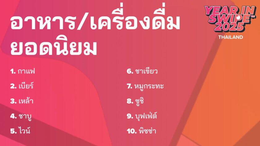 | Interest ยอดนิยม ธรรมชาติ เด็กยุค 90 การเดินทาง อินสตาแกรม การดูแลตนเอง โรงละคร ความรักต่อตนเอง นักชิม ดนตรี 10.ภาพยนตร์ | อาหารและเครื่องดื่มยอดนิยมปี 2568 กาแฟ เบียร์ เหล้า ชาบู ไวน์ ชาเขียว หมูกระทะ ซูชิ บุฟเฟ่ 10.พิซซ่า |