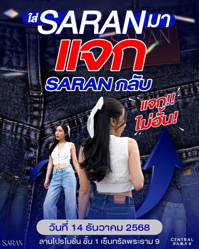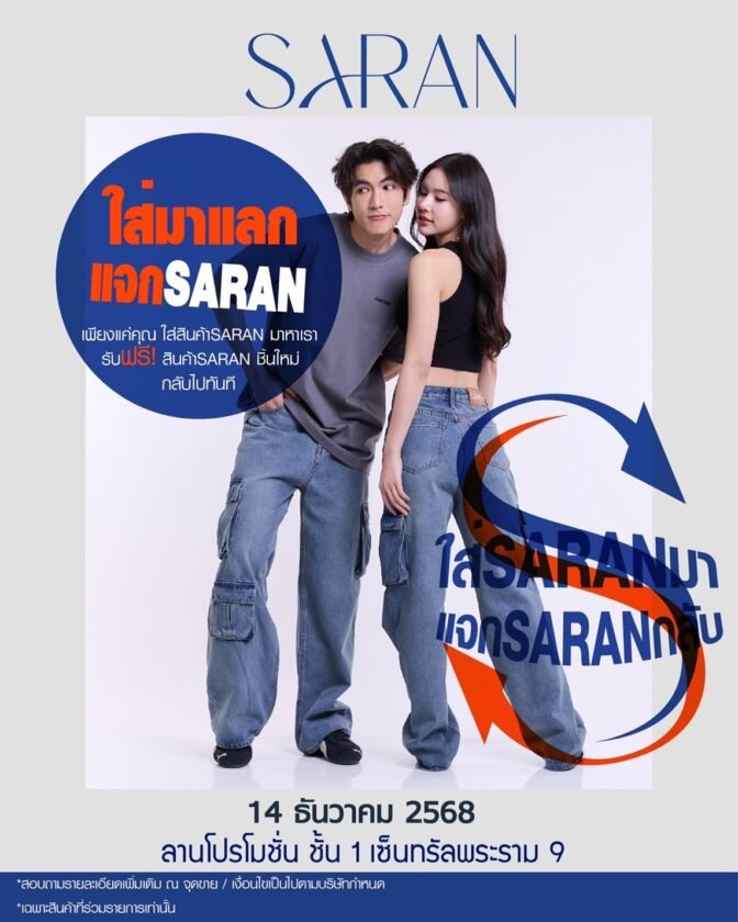 เอาใจสาวกยีนส์แบบจัดเต็ม! SARAN แบรนด์ยีนส์สัญชาติไทย เตรียมจัดงานอีเว้นท์ครั้งใหญ่ส่งท้ายปี ในโอกาสเฉลิมฉลองความสำเร็จด้านยอดขาย พร้อมเปิดตัววางจำหน่ายในห้างเป็นครั้งแรก กับงาน Grand Opening SARAN ที่มาพร้อมเซอร์ไพรส์สุดพิเศษสำหรับแฟนแบรนด์โดยเฉพาะ