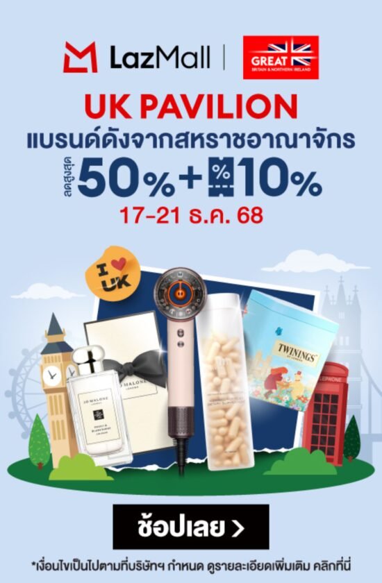 สถานเอกอัครราชทูตอังกฤษ สานต่อความร่วมมือกับ ลาซาด้า ในแคมเปญพิเศษ “UK Pavilion – ช้อปแบรนด์ดังจากสหราชอาณาจักร” เติมสีสันรับเทศกาลส่งท้ายปี คัดสรรสินค้าแบรนด์ดังส่งตรงจากสหราชอาณาจักรมากกว่า 7,000 รายการบน LazMall แหล่งรวมสินค้าคุณภาพและแบรนด์ชั้นนำจากทั่วโลก มอบประสบการณ์ช้อปปิงระดับพรีเมียม พร้อมดีลสุดพิเศษและของขวัญสุดเอ็กซ์คลูซีฟ รับฤดูกาลแห่งการเฉลิมฉลอง ระหว่างวันที่ 17–21 ธันวาคม นี้