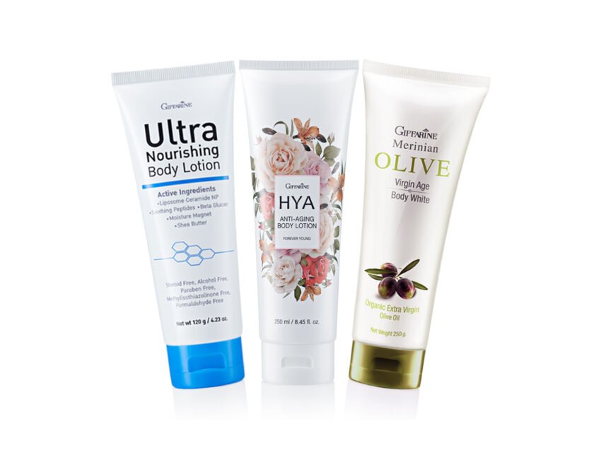 ตัวแรกที่ขาดไม่ได้อย่าง ‘กิฟฟารีนเมอริเนี่ยนโอลีฟเวอร์จิ้นเอจบอดี้ไวท์’ (Giffarine Merinian Olive Virgin Age Body White) โลชั่นบำรุงผิวกายเข้มข้น มีสารอาหารบำรุงผิว และน้ำมันมะกอก ออร์แกนิก เอ็กซ์ตร้า เวอร์จิ้น เข้มข้นมากถึง 6 % เพื่อช่วยฟื้นฟูผิว เติมความชุ่มชื้น ผิวดูเรียบเนียนขึ้น มีความกระจ่างใส และสีผิวสม่ำเสมอ พร้อมปกป้องผิวด้วยสารป้องกันแสงแดด