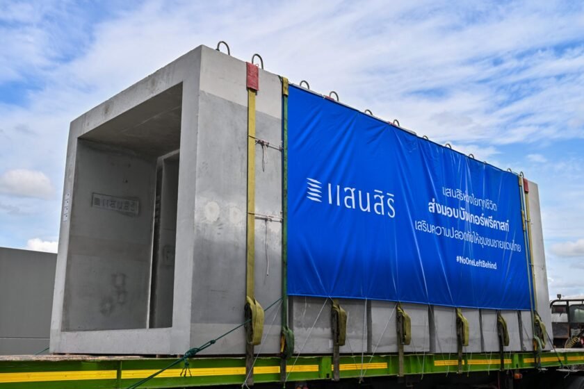 ส่วนสถานการณ์ตามแนวชายแดนไทย–กัมพูชา โดยเฉพาะพื้นที่จังหวัดศรีสะเกษและอุบลราชธานีที่ยังมีความอ่อนไหว แสนสิริได้นำความเชี่ยวชาญด้าน “เทคโนโลยีการก่อสร้างระดับสูง” มาพัฒนาและส่งมอบ “บังเกอร์นวัตกรรม“ โดยใช้แผ่นกรีนพรีคาสท์ (Green Precast) ซึ่งเป็นแผ่นคอนกรีตสำเร็จรูปเสริมเหล็กที่ถูกพัฒนาขึ้นเป็นพิเศษ ทำให้มีความทนทานต่อแรงกระแทกสูง สามารถรับมือกับแรงสั่นสะเทือนหรือแรงระเบิดในระยะไกลได้อย่างมีประสิทธิภาพ มอบให้แก่ทหารที่ปฏิบัติหน้าที่ด่านหน้าของประเทศในพื้นที่เสี่ยง เพื่อเป็นเกราะเสริมความปลอดภัย ไม่ทิ้งใครไว้ข้างหลัง และจิตอาสาแสนสิริยังได้ร่วมบริจาคโลหิตกับสภากาชาดไทยเพื่อสำรองโลหิตให้แก่โรงพยาบาลและผู้ที่ต้องการความช่วยเหลืออีกด้วย
