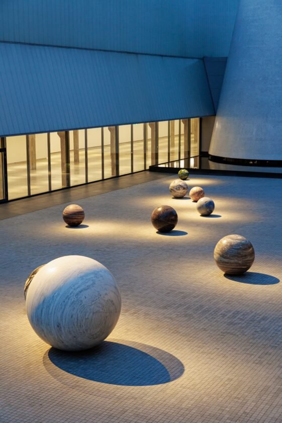 งานจัดแสดงยังขยายออกไปภายนอกอาคาร พลิกโฉมภูมิทัศน์โดยรอบให้กลายเป็นส่วนหนึ่งของ ประสบการณ์ศิลปะ กลางลานเด่นด้วย Pars pro Toto (2020) โดยอลิเชีย ควาเดผลงานจัดวางนี้ ประกอบด้วยลูกโลกหินมหึมา 11 ลูก มีขนาดเส้นผ่านศูนย์กลางตั้งแต่ 70–250 เซนติเมตร ชวนผู้ชม ไตร่ตรองเชิงกวีถึง ระบบดาวเคราะห์และแก่นสารแห่งวัตถุ
