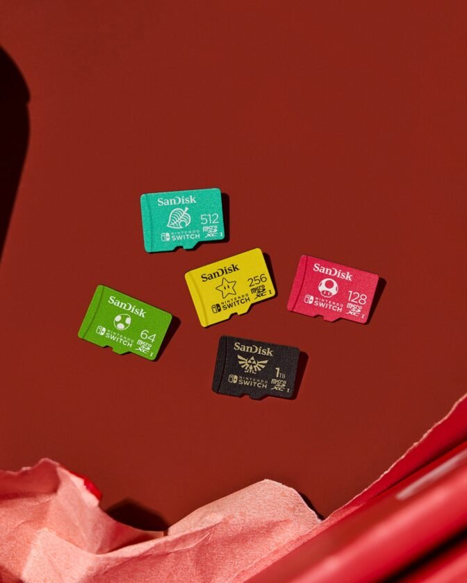 - SanDisk microSDXC™ Card สำหรับ Nintendo® Switch™ (ลิขสิทธิ์แท้) – การ์ดหน่วยความจำลิขสิทธิ์อย่างเป็นทางการ ความจุสูงสุด 1TB มาพร้อมความเร็วอ่าน/เขียนสูงสุด 100MB/s และ 90MB/s ช่วยให้เล่นเกมได้ต่อเนื่อง โหลดเร็วขึ้น และใช้เวลารอน้อยลง เพื่อความสนุกที่ไม่สะดุดในทุกการเล่น