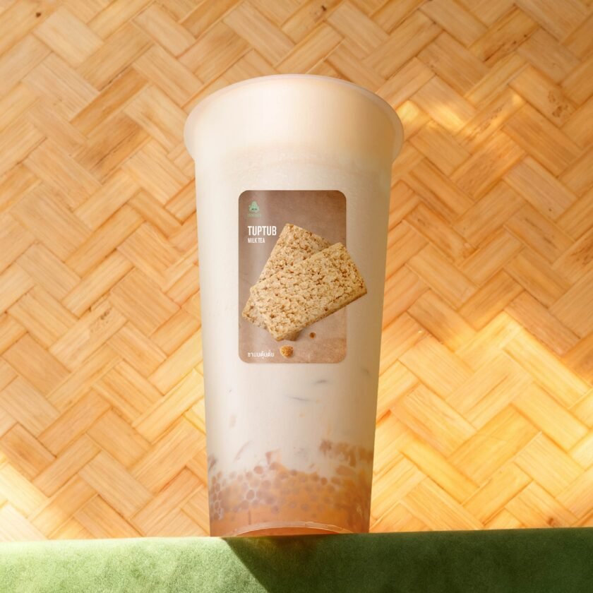 Tuptub Milk Tea (ชานมตุ๊บตั๊บ) : สัมผัสความอร่อยของเนยถั่วสุดกลมกล่อม ผสมผสานความหอมละมุนของชาในทุกคำ ด้านล่างมีสาคูเม็ดเล็กให้เคี้ยวฟินๆ ท็อปด้วยครีมชีสหวานนัว รสชาติขนมวัยเด็กที่คิดถึง…อร่อยจนลืมไม่ลง