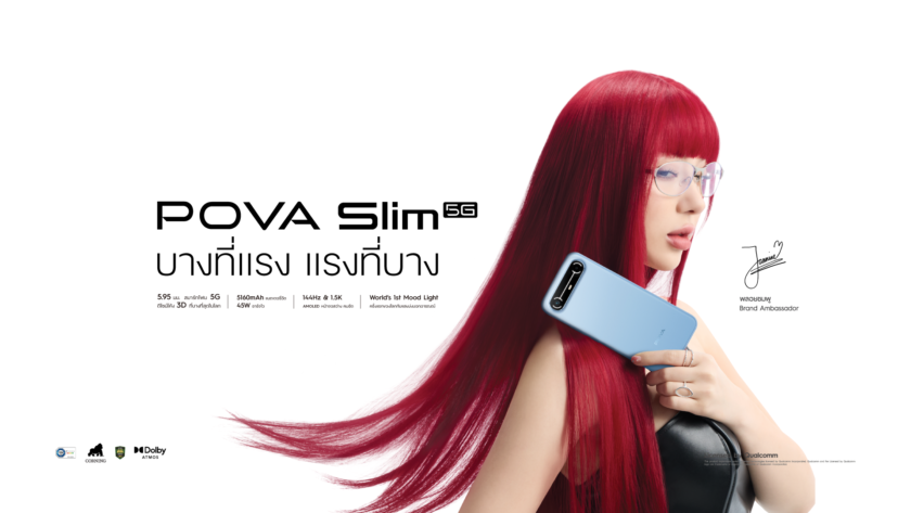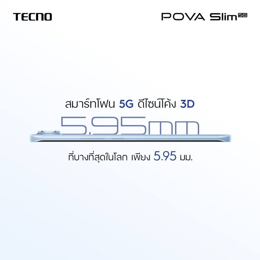 ในฐานะนวัตกรรมดีไซน์บางเฉียบล่าสุดของซีรีส์ POVA สำหรับผู้ใช้เจเนอเรชันใหม่ POVA Slim 5G มอบสไตล์ล้ำอนาคต ความทนทานที่พร้อมใช้งานจริง พร้อมการอัปเกรดด้านแบตเตอรี่และประสิทธิภาพอย่างมีนัยสำคัญในสมาร์ตโฟนเพียงเครื่องเดียว โดยจะวางจำหน่ายใน 3 สีโดดเด่น ได้แก่ Sky Blue, Slim White และ Cool Black