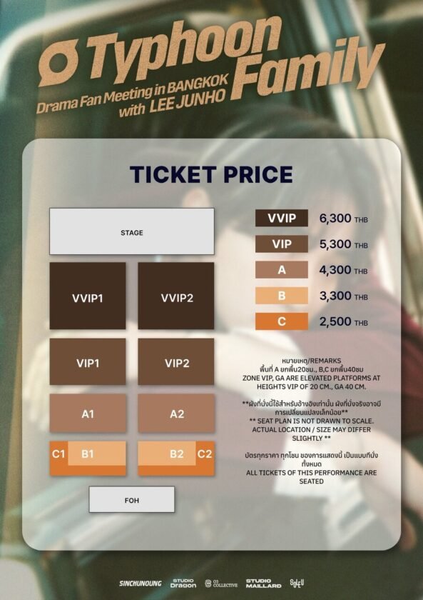 แฟน ๆ ชาวไทย เตรียมมาเติมความสุข รับโมเมนต์สุดฟินในงาน “Typhoon Family Drama Fan Meeting in Bangkok with LEE JUNHO” สามารถซื้อบัตรได้แล้ววันนี้ทาง Ticketmelon (https://www.ticketmelon.com/studiomaillard/typhoonfamily) ราคาบัตร 6,300 / 5,300 / 4,300 / 3,300 / 2,500 บาท มาร่วมสร้างความทรงจำดี ๆ ผ่านค่ำคืนที่คุณจะไม่มีวันลืมไปกับ “อีจุนโฮ” ด้วยกัน