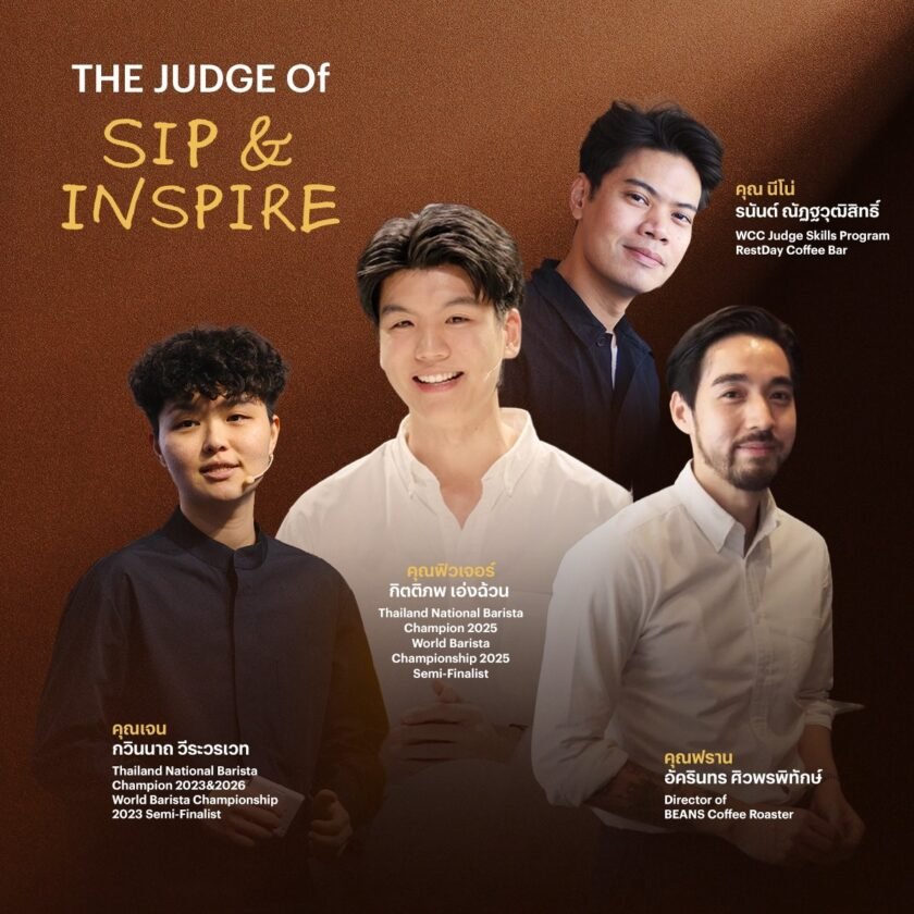 การรวมตัวกันของเหล่าแชมป์บาริสต้าดีกรีชิงแชมป์ระดับโลกและผู้ประกอบการระดับประเทศ อาทิฟิวเจอร์–กิตติภพเอ่งฉ้วน World Barista Championship 2025 Semi-Finalist และ Thailand National Barista Champion 2025, เจน–กวินนาถวีระวรเวท Thailand National Barista Champion 2023&2026 และ World Barista Championship 2023 Semi-Finalist และ