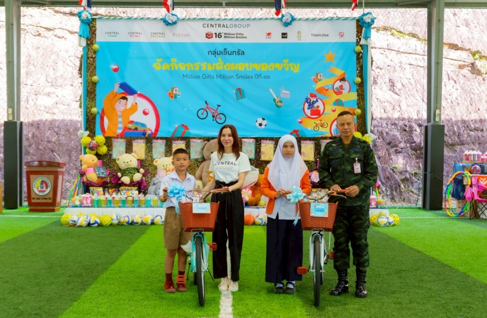 สมกมล จิราธิวัฒน์ ผู้อำนวยการอาวุโสกลุ่มเซ็นทรัล กล่าวว่า “กลุ่มเซ็นทรัล ร่วมกับกองทัพบก ดำเนินโครงการ “มิลเลี่ยนกิฟต์มิลเลี่ยนสมายล์” อย่างต่อเนื่องเป็นปีที่ 16 เพื่อเชิญชวนคนไทย คู่ค้า ภาคีเครือข่าย และธุรกิจในเครือ ร่วมส่งต่อของขวัญแทนความรักและความห่วงใย มอบให้แก่เยาวชนในพื้นที่ 3 จังหวัดชายแดนภาคใต้และจังหวัดสงขลา เนื่องในโอกาสวันเด็กแห่งชาติและเทศกาลปีใหม่