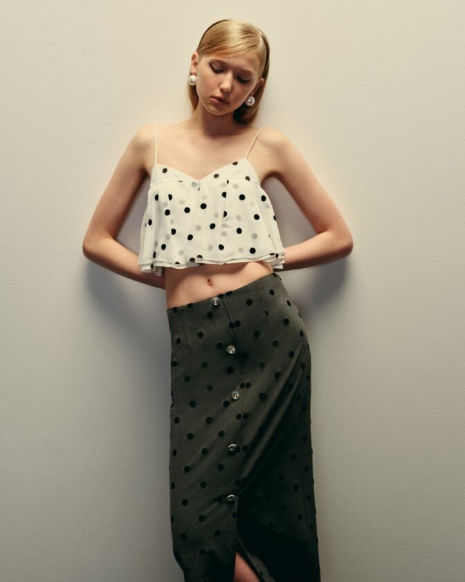 ไฮไลต์ของคอลเลกชั่น อาทิ เดรสผ้าลูกไม้พร้อมซับใน และกระโปรงผ้าโพลีเอสเตอร์ที่ใช้เทคนิคเลเซอร์คัตตัดเลเยอร์อย่างประณีตช่วยเพิ่มมิติความหรูหราและความแกลมให้กับซิลลูเอท, เดรสผ้าตาข่ายตกแต่งด้วยฮอทฟิกในดีไซน์รัดรูป ช่วยเสริมความคล่องแคล่ว ปราดเปรียว และความมั่นใจให้กับผู้สวมใส่, เดรสผ้ายืดสีเขียวที่โดดเด่นด้วยเทคนิคบิดและทวิสต์บริเวณคอ และเดรสสีชมพูที่เพิ่มดีเทลม้วนด้านหลัง ตกแต่งด้วยอะไหล่เพชรและอะไหล่สีทอง เพิ่มความหรูหราอย่างมีเสน่ห์ และเดรสออร์แกนซ่าสกรีนลายโพก้าดอทซ้อนทับบนผ้าพิมพ์ลาย ถ่ายทอดความโรแมนติกแบบวินเทจในมุมมองร่วมสมัย สะท้อนความประณีตของงานออกแบบที่ผสานอดีตและปัจจุบันเข้าไว้ด้วยกันอย่างลงตัว