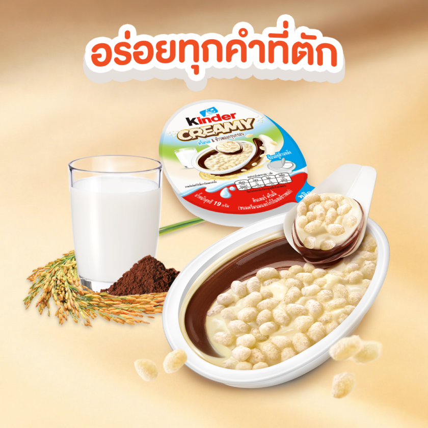 - Kinder Creamy เป็นตัวเลือกขนมขบเคี้ยวสำหรับเด็ก ที่มาพร้อมรสชาติใหม่ ๆ ช่วยเติมสีสันให้ทุก