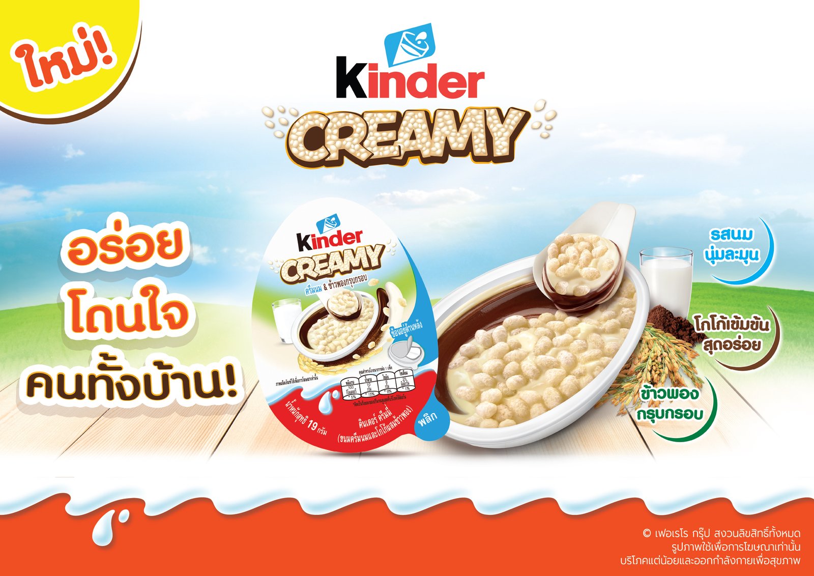 เฟอร์เรโรแบรนด์ชั้นนำระดับโลกในอุตสาหกรรมขนมหวานประกาศเปิดตัวผลิตภัณฑ์ใหม่ล่าสุดในประเทศไทย “Kinder Creamy” สมาชิกใหม่ของครอบครัว Kinder ที่คัดสรรวัตถุดิบคุณภาพสูง อาทิ นม เพื่อมอบประสบการณ์รสชาติแสนอร่อย มาพร้อมเนื้อสัมผัสหลากหลายมิติในทุกคำที่ตัก ความสนุกจากการแกะ เปิด ตัก และลิ้มรสง่าย ๆ ตามสโลแกน “Flip it – Peel it – Scoop it” ด้วยรสชาติที่นุ่มละมุนและรูปแบบที่ชวนเล่น Kinder Creamy ช่วยเพิ่มสีสันให้กับช่วงเวลาในแต่ละวัน และสามารถรับประทานได้ทุกที่ทุกเวลา วางจำหน่ายในราคา 20 บาท