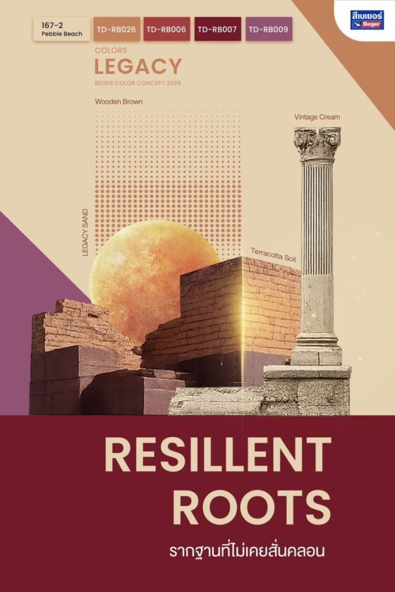 แนวคิด COLORS LEGACY จึงไม่ใช่เพียงการคาดการณ์เทรนด์สีแต่เป็นการถ่ายทอด “คุณค่าของสี” ที่สะสมจากรากวัฒนธรรมไทย ความเรียบง่าย ความอบอุ่น และความสมดุลของการใช้ชีวิต สีในคอลเลกชันนี้ถูกออกแบบให้ตอบโจทย์ทั้งบ้านไทยร่วมสมัย อาคารพาณิชย์ และพื้นที่ที่ต้องการความกลมกลืนระหว่างอดีต ปัจจุบัน และอนาคต