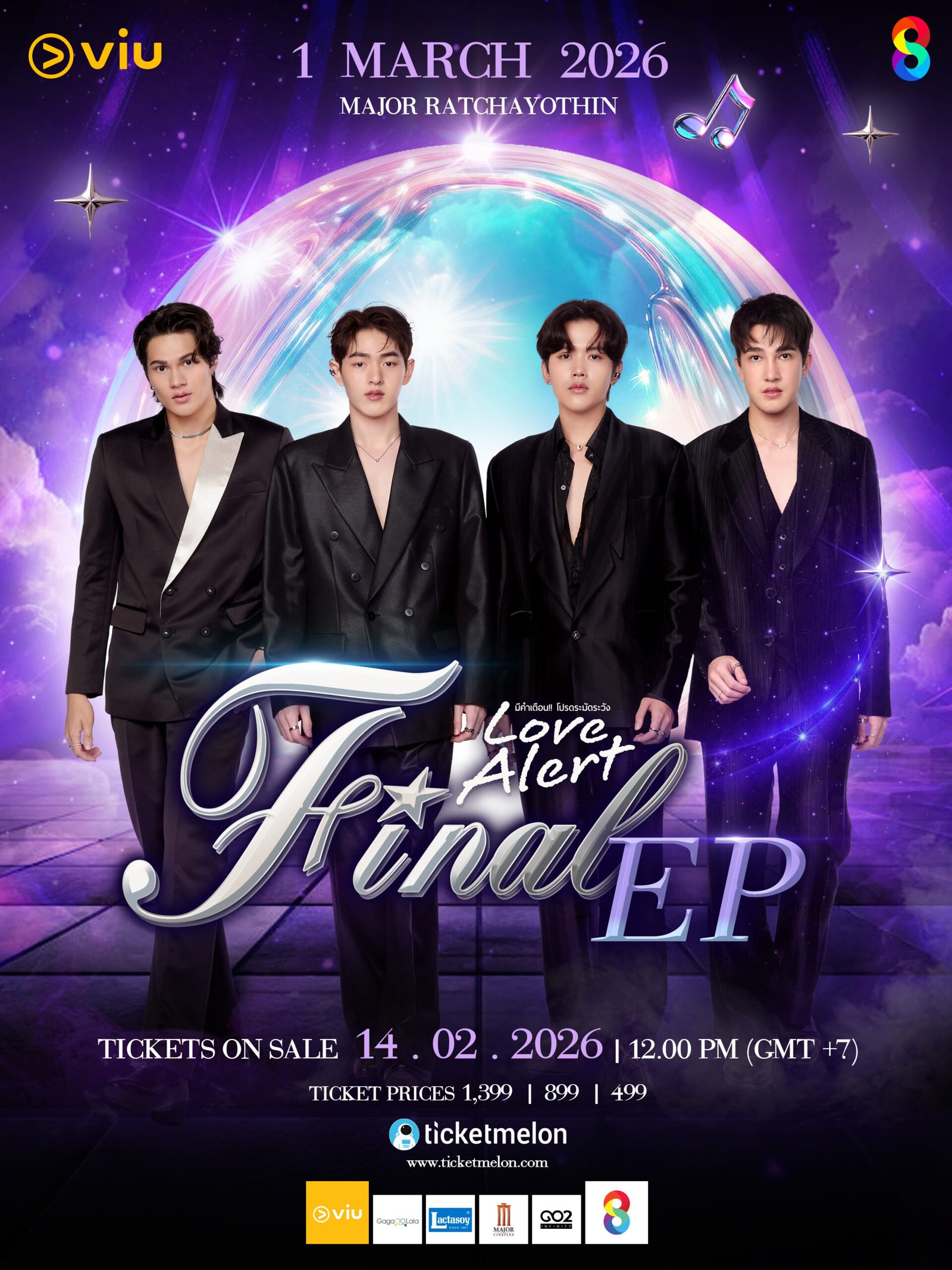กระแสตอบรับที่แรงเกินต้านของซีรีส์Love Alert มีคำเตือนโปรดระมัดระวังทางสถานีโทรทัศน์ช่อง8 กำลังเดินทางสู่บทสรุปครั้งสำคัญ กับอีเวนต์ใหญ่ส่งท้ายอีพี “Love Alert Final EP” ที่เตรียมจัดขึ้นในวันอาทิตย์ที่1 มีนาคม2026 ณ Major Cineplex Ratchayothin เพื่อมอบประสบการณ์แบบเอ็กซ์คลูซีฟให้แฟนซีรีส์ได้ร่วมเป็นส่วนหนึ่งของช่วงเวลาแห่งความทรงจำ พร้อมกิจกรรมพิเศษและโชว์ที่จัดเต็มพร้อมร่วมรับชมอีพีสุดท้ายพร้อมกันก่อนใคร แบบใกล้ชิดนักแสดงนำในเรื่อง