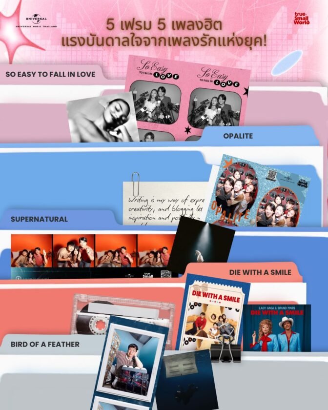 วาเลนไทน์นี้ ไม่ว่าจะเป็นหนุ่มสาวคู่รักหวานแหวว คู่เพื่อนซี้ไปไหนไปกัน หรือฉายเดี่ยวตัวคนเดียวสวย ๆ อย่าลืมมาฉลองเดือนแห่งความรัก กับ TRUE X SMALL WORLD x LOVE IS UNIVERSAL 2026 ที่ชวนทุกคนมาถ่ายรูปเริ่ด ๆ ด้วยกันกับ 5 เฟรมสติกเกอร์ดีไซน์สุดเก๋จาก 5 เพลงรักสุดฮิตที่คุณเลิฟ ไม่ว่าจะเป็น