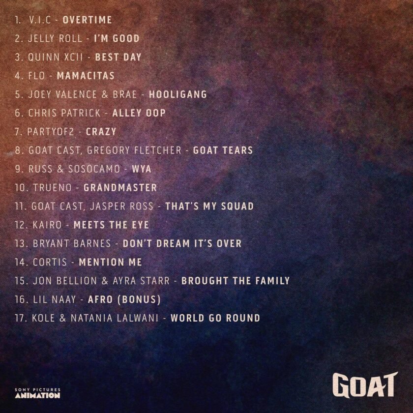GOAT ORIGINAL MOTION PICTURE SOUNDTRACK – TRACKLIST