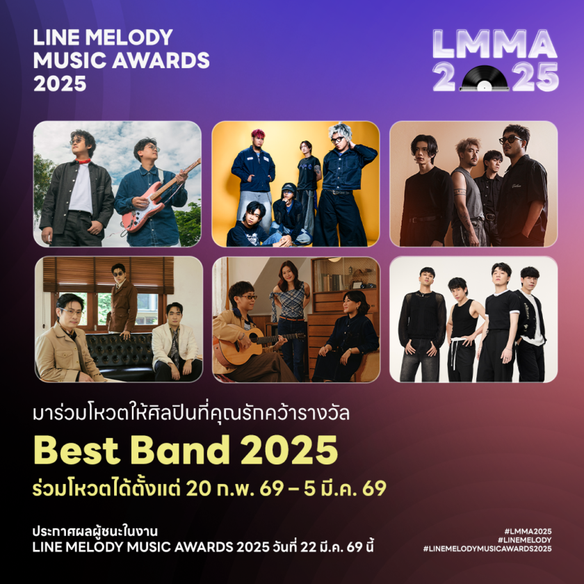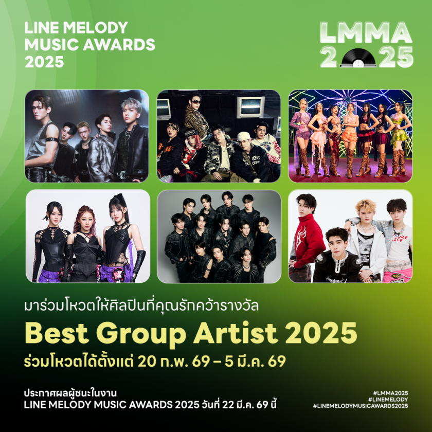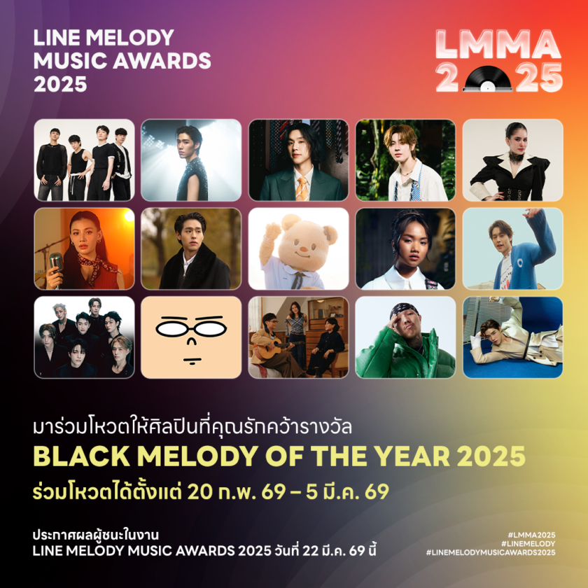 LINE MELODY เตรียมจัดงาน “LINE MELODY MUSIC AWARDS 2025 Presented by SAMSUNG Galaxy” (LMMA2025) งานประกาศรางวัลครั้งยิ่งใหญ่แห่งปี ภายใต้ธีม “RING OUT YOUR VIBES” ขนทัพศิลปิน T-Pop มากมายมาเปิดพื้นที่ให้แฟนเพลงได้ร่วมปลดปล่อยพลัง อารมณ์ และตัวตนผ่านเสียงดนตรี ในบรรยากาศ