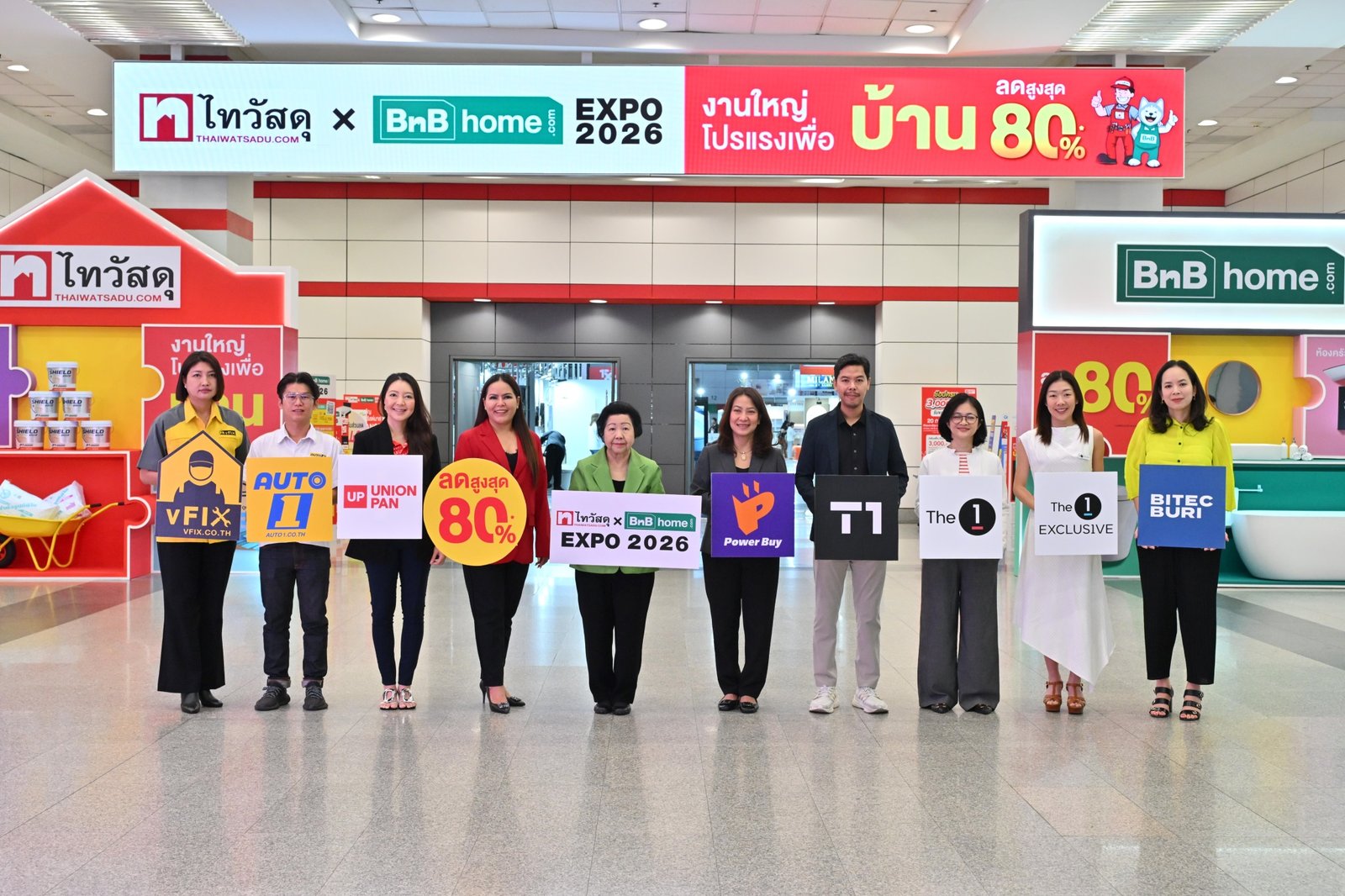 ‘ไทวัสดุ x บีเอ็นบีโฮมเอ็กซ์โป 2026’ ตั้งแต่วันที่ 20 กุมภาพันธ์ 2569 – วันที่ 1 มีนาคม 2569 ณ ไบเทค บางนา ฮอลล์ 101-104 เวลา 10.00 – 22.00 น. ณ ไบเทค บางนา ฮอลล์ 101 – 104 สามารถติดตามโปรโมชั่นและสิทธิประโยชน์สุดคุ้มมากมายจากไทวัสดุและบีเอ็นบี โฮม ได้ที่ www.thaiwatsadu.com, Line : @Thaiwatsadu , Facebook: Thai Watsadu และ BnB home: www.bnbhome.com , Line : @bnbhometh , Facebook: BnB home หรือโทร 1308