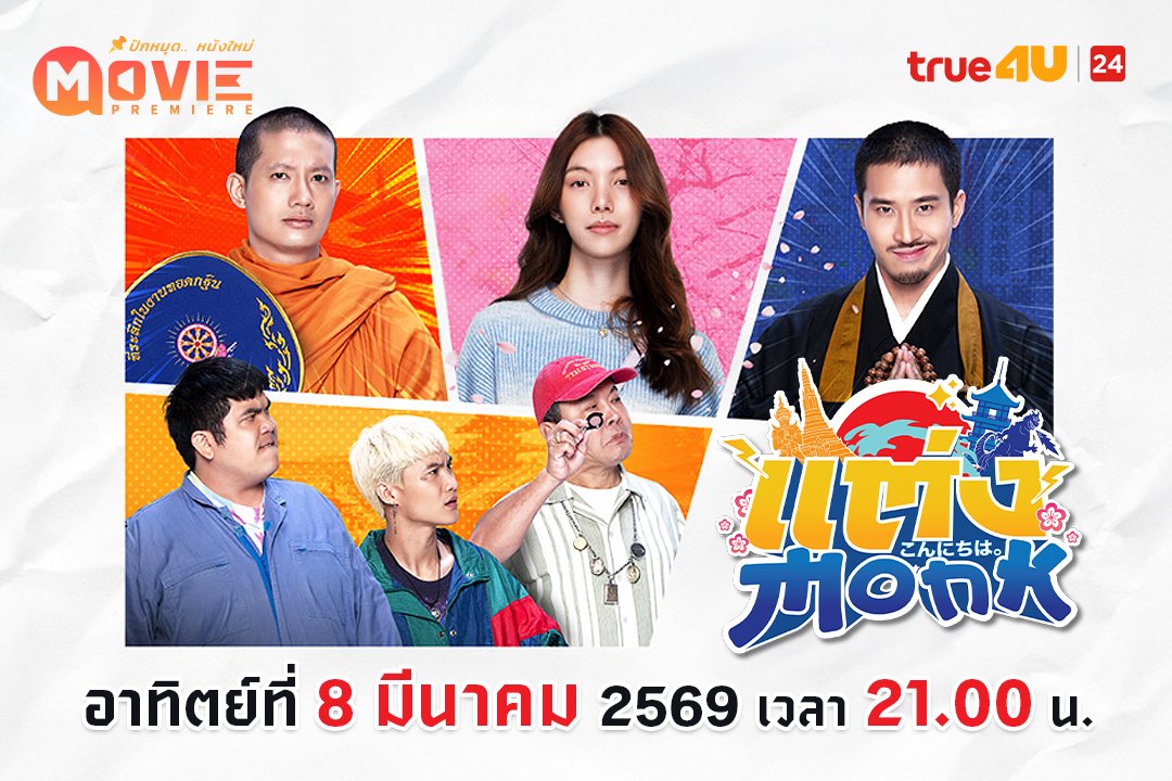 ทรูโฟร์ยู ช่อง 24 พร้อมส่งความบันเทิงอารมณ์ดีคืนวันอาทิตย์กับมูฟวี่พรีเมียร์ “แต่ง…Monk” ภาพยนตร์คอมเมดีกลิ่นอายญี่ปุ่นที่ผสานเรื่องราวครอบครัว ความผูกพัน และศรัทธาไว้อย่างลงตัว นำโดยนักแสดงฝีมือเยี่ยม เป้อารักษ์อมรศุภศิริและเฟยภัทรเอกแสงกุล กับบทพระต่างวัฒนธรรมที่ต้องเผชิญเหตุการณ์เกินคาด เสริมทัพด้วยทีมตลกอย่าง จาตุรงค์มกจ๊กแจ็คเฉลิมพลและโอมธนาภัค ที่ช่วยเพิ่มรสสนุกให้เรื่องราวเข้มข้นและน่าติดตามยิ่งขึ้น.