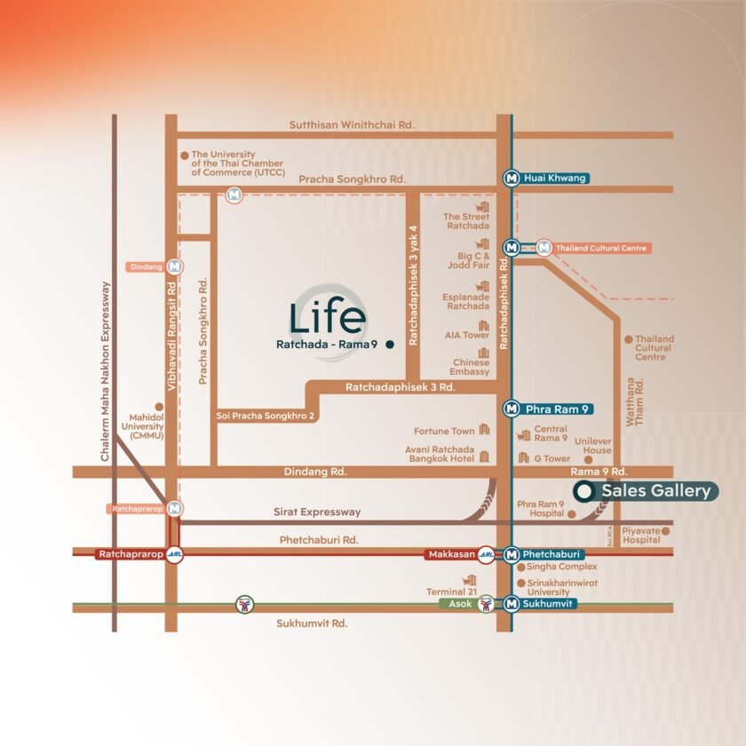 - LIFE รัชดา–พระราม 9 คอนโด Low-rise ใหม่ล่าสุดเพียงหนึ่งเดียวใจกลาง New CBD สร้างสมดุลระหว่างโหมด Active และ Pause เพื่อให้ทุกสเปซเป็นพื้นที่ชาร์จพลังใจสู่ผลลัพธ์ของการใช้ชีวิตแบบ ‘Bloom in the Center of Lifestyle’ การเติบโตและเบ่งบานในแบบที่ดีที่สุดของตัวเอง