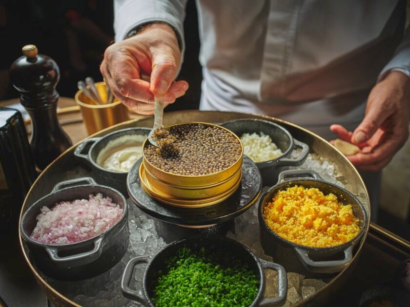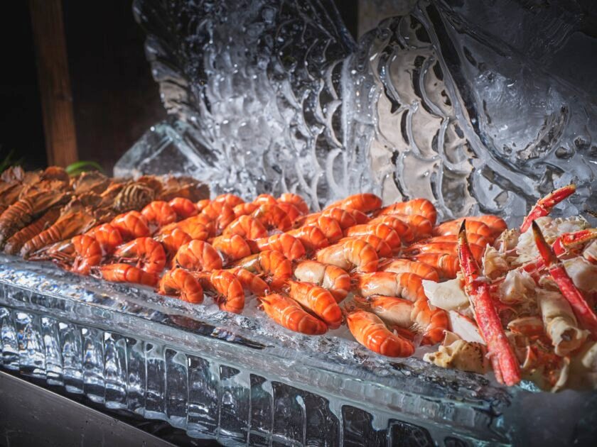 ไลน์อาหารซีฟู้ดบนน้ำแข็งถือเป็นอีกหนึ่งจุดเด่น ไม่ว่าจะเป็นหอยนางรมชั้นเลิศจากฝรั่งเศส กุ้งแม่น้ำตัวโต ล็อบสเตอร์ ปูอลาสก้า และซีฟู้ดคุณภาพเยี่ยมอีกหลากหลายชนิด เสริมด้วยโคลด์คัตและชีสนำเข้า ฟัวกราส์ สเตชันกริลล์ที่ย่างกันสดๆ รวมถึงรถเข็นคาเวียร์สำหรับผู้ที่ต้องการเพิ่มความพรีเมียมให้มื้อพิเศษ