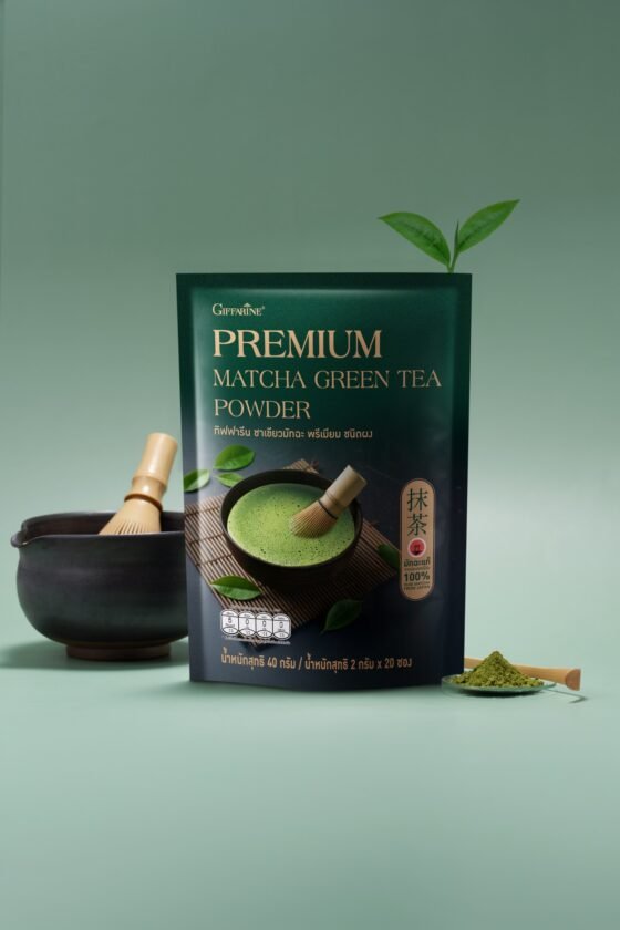 Giffarine Premium Matcha Green Tea Powder เป็นชาเขียวมัทฉะ เกรดพรีเมียม ผลิตจากใบชายอดอ่อน ผ่านการคัดสรรมาอย่างพิถีพิถัน ก่อนนำมาบดละเอียดเป็นผงมัทฉะ 100% โดยมีสีเขียวจากธรรมชาติของใบชา กลิ่นหอมเข้ม กลมกล่อมด้วยโทนสาหร่าย ขมฝาดน้อย ไม่เติมน้ำตาล ไม่แต่งสี ไม่แต่งกลิ่น ไม่ใช้วัตถุกันเสีย และให้พลังงานเพียง 5 กิโลแคลอรี่/ซอง เท่านั้น