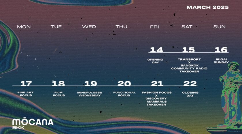 ภายในงาน MOCANA BANGKOK 2025 จะได้เพลิดเพลินกับผลงานศิลปะและเวิร์คช็อปตลอดทั้ง 9 วันตั้งแต่วันที่ 14 – 22 มีนาคม 2568 รายละเอียดเพิ่มเติมและสามารถจองบัตรเข้าชมงานได้ทาง https://www.ticketmelon.com/mocana/mocana