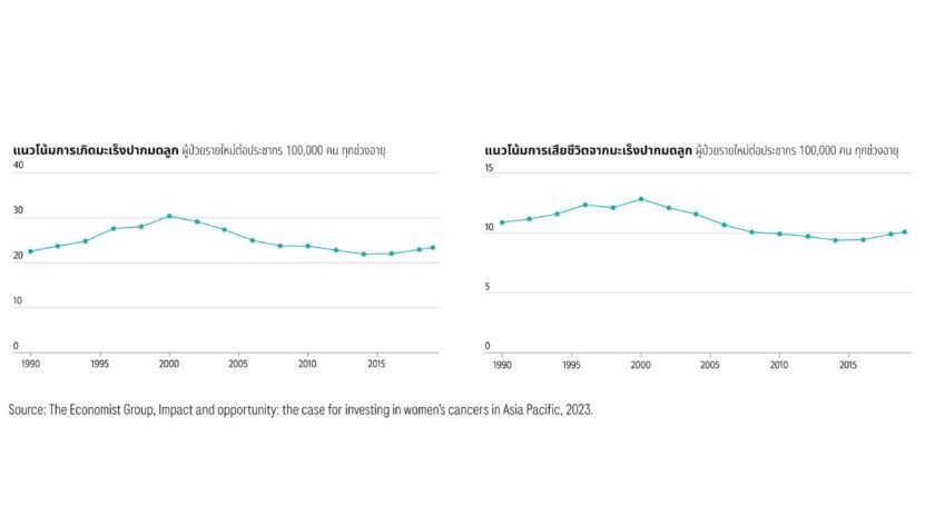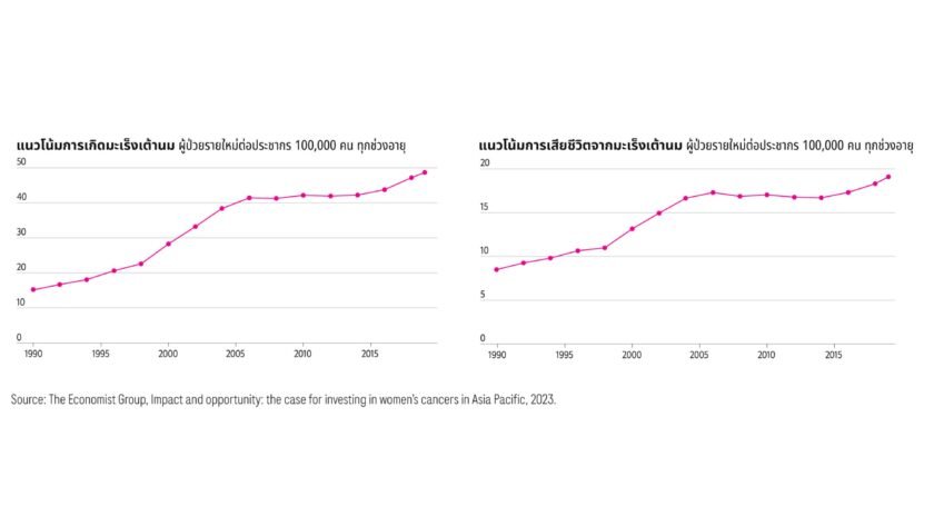 ทั้งนี้ ผู้หญิงอายุต่ำกว่า 40 ปีมีแนวโน้มการเกิดโรคและเสียชีวิตจากมะเร็งเต้านมและมะเร็งปากมดลูกเพิ่มขึ้น อย่างต่อเนื่อง สะท้อนถึงความจำเป็นในการเร่งส่งเสริมการตรวจคัดกรองและการรักษาตั้งแต่ระยะเริ่มต้น โดยเฉพาะในกลุ่มผู้หญิงอายุน้อยที่อาจยังไม่ตระหนักถึงความเสี่ยงของตนเอง