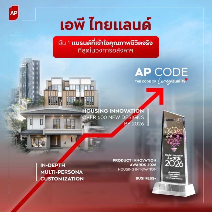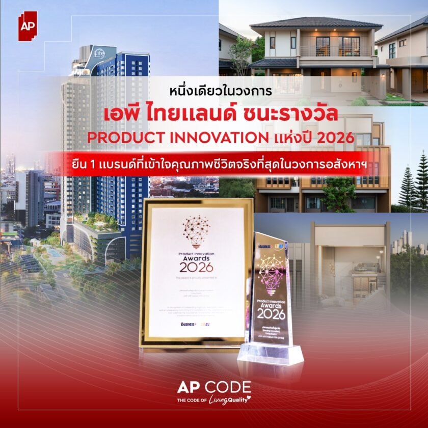 - เอพีไทยแลนด์ตอกย้ำคำมั่นสัญญา “ชีวิตดีๆที่เลือกเองได้” คว้ารางวัล Product Innovation Awards 2026 สาขา Housing Innovation จากนิตยสาร Business+หนึ่งเดียวในอุตสาหกรรมอสังหาฯสะท้อนศักยภาพการออกแบบที่อยู่อาศัยที่ตอบโจทย์ชีวิตจริง