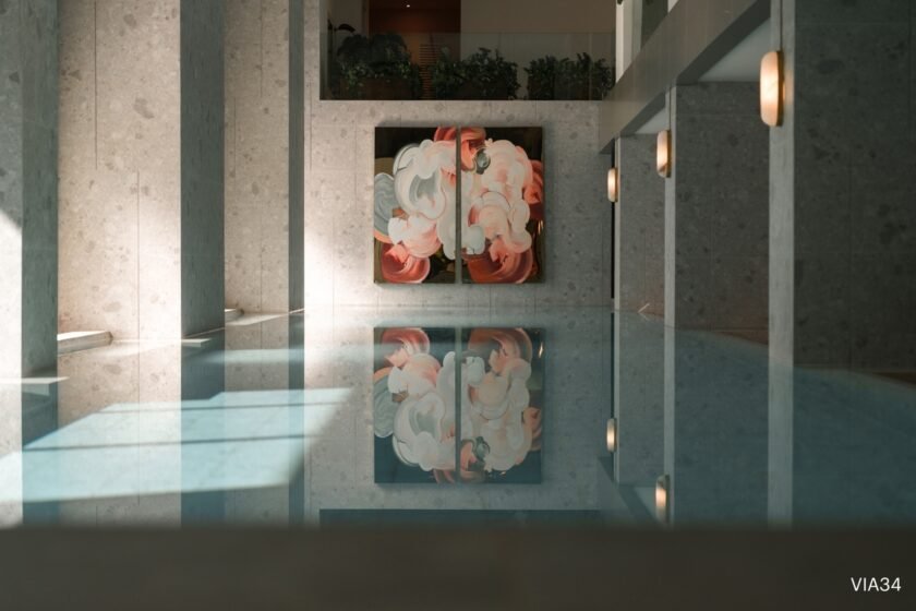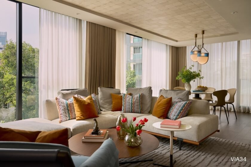 Via 34 ได้รับการรังสรรค์ให้มีเอกลักษณ์เฉพาะตัวถ่ายทอดผ่านแนวคิด “Making the Ordinary Extraordinary” ผสานความเรียบง่ายเข้ากับสุนทรียะแห่งศิลปะคิวบิสม์ (Cubism) ผ่านสถาปัตยกรรมร่วมสมัยที่ฉีกกรอบมุมมองเดิมด้วยรูปทรงเรขาคณิต พื้นที่ส่วนกลางได้รับการออกแบบให้มอบประสบการณ์เสมือนอยู่ในอาร์ตแกลเลอรี ด้วยการดีไซน์และเลือกใช้วัสดุชั้นเลิศ รวมถึงเฟอร์นิเจอร์หายาก จากแบรนด์ระดับโลกอย่าง Poltrona Frau จากประเทศอิตาลีที่คัดสรรมาอย่างพิถีพิถัน เสมือนเป็นงานศิลปะชิ้นเอก ตั้งแต่ THE GREETING HALL พื้นที่ต้อนรับ สะท้อนถึงความเรียบหรู เสมือนพักผ่อนอยู่ใน Boutique Hotel โดดเด่นด้วยเฟอร์นิเจอร์ไอคอนิก Vanity Fair Armchair ผลงานออกแบบโดย Renzo Frau ผู้ก่อตั้งแบรนด์ ซึ่งเปิดตัวอย่างเป็นทางการในปี 1930 สะท้อนความเป็น Timeless Design อันทรงคุณค่าเหนือกาลเวลากว่า 100 ปี สร้างบรรยากาศอบอุ่น หรูหรา และยกระดับการใช้สเปซได้อย่างลงตัว รวมถึงโคมไฟแชนเดอเลียร์สั่งทำพิเศษและ Antique Art Piece ที่ตกแต่งบนผนัง ขับเสน่ห์ของพื้นที่ให้โดดเด่นมากยิ่งขึ้น, THE LIVING LOUNGE พื้นที่พักผ่อนที่เชื่อมต่อไปกับสระว่ายน้ำจัดวางได้อย่างลงตัว, อีกหนึ่งไฮไลต์สำคัญ คือ THE CLUB พื้นที่แห่งแรงบันดาลใจ พร้อมรองรับทุกกิจกรรมทั้งการประชุมและการพักผ่อนมีการผสมผสานเฟอร์นิเจอร์หายากอย่าง Golem Chair ซึ่งผลิตในจำนวนจำกัดและปัจจุบันเลิกผลิตไปแล้ว จึงนับเป็นของสะสมชิ้นสำคัญ ที่สะท้อนรสนิยมอันลุ่มลึกและมีความพิเศษเฉพาะตัวของโครงการ, THE POOL สระว่ายน้ำในร่ม ที่ได้รับการออกแบบให้เป็นส่วนหนึ่งของสเปซรับแสงธรรมชาติ ผสมผสานฟังก์ชันและดีไซน์ได้อย่างลงตัว, THE GYM ตอบโจทย์ไลฟ์สไตล์คนเมืองที่ใส่ใจสุขภาพ ด้วยอุปกรณ์ออกกำลังกายครบครัน และ THE UPPER YARD พื้นที่สีเขียวขนาดใหญ่ ประกอบด้วย SANSIRI BACKYARD และพื้นที่สำหรับสัตว์เลี้ยงให้สัมผัสความสุขจากธรรมชาติในทุกวัน