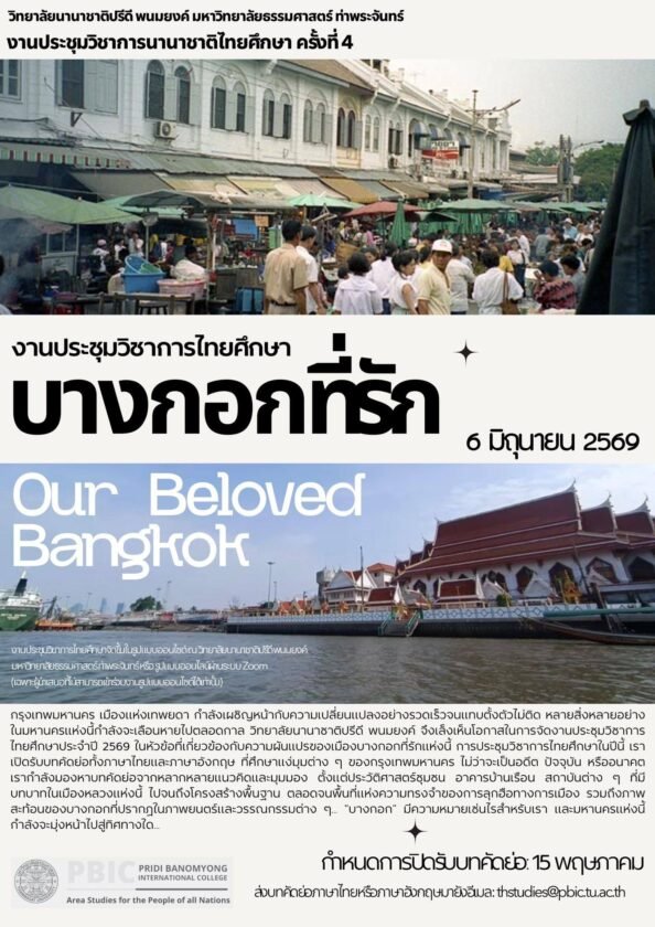 วิทยาลัยนานาชาติปรีดี พนมยงค์ (PBIC) มหาวิทยาลัยธรรมศาสตร์ มีความยินดีเป็นอย่างยิ่งที่จะประกาศการเปิดรับสมัครการประกวดภาพถ่าย “Bangkok Thi Rak” ซึ่งจัดขึ้นเนื่องในโอกาสการประชุมวิชาการว่าด้วยประวัติศาสตร์และปัจจุบันของกรุงเทพฯ ภายใต้ชื่อ “Bangkok Ti Rak” หรือ “Beloved Bangkok” ที่จะจัดขึ้น ณ มหาวิทยาลัยธรรมศาสตร์ ท่าพระจันทร์ ในวันที่ 6 มิถุนายนนี้