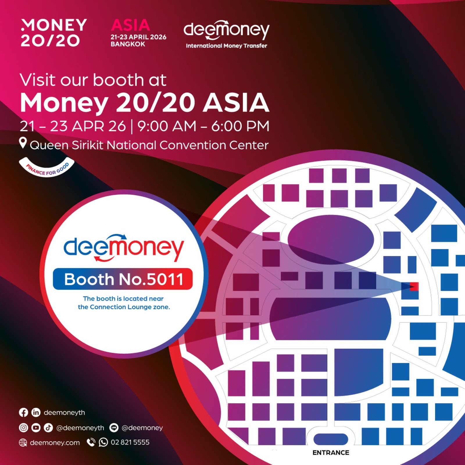 DeeMoney (ดีมันนี่) บริษัทฟินเทคด้านการชำระเงินข้ามประเทศที่ใหญ่ที่สุดของประเทศไทย ประกาศเข้าร่วมงาน Money20/20 Asia 2026 ระหว่างวันที่ 21-23 เมษายน ณ ศูนย์การประชุมแห่งชาติสิริกิติ์ (QSNCC) ตอกย้ำบทบาทของประเทศไทยในฐานะศูนย์กลางความเชื่อมโยงทางการเงิน (Financial Connectivity) ระดับภูมิภาคที่เติบโตอย่างต่อเนื่อง ด้วยขนาดของแพลตฟอร์มที่ปัจจุบันรองรับธุรกรรมการโอนเงินขาเข้าประเทศประมาณ 35% ของทั้งหมด