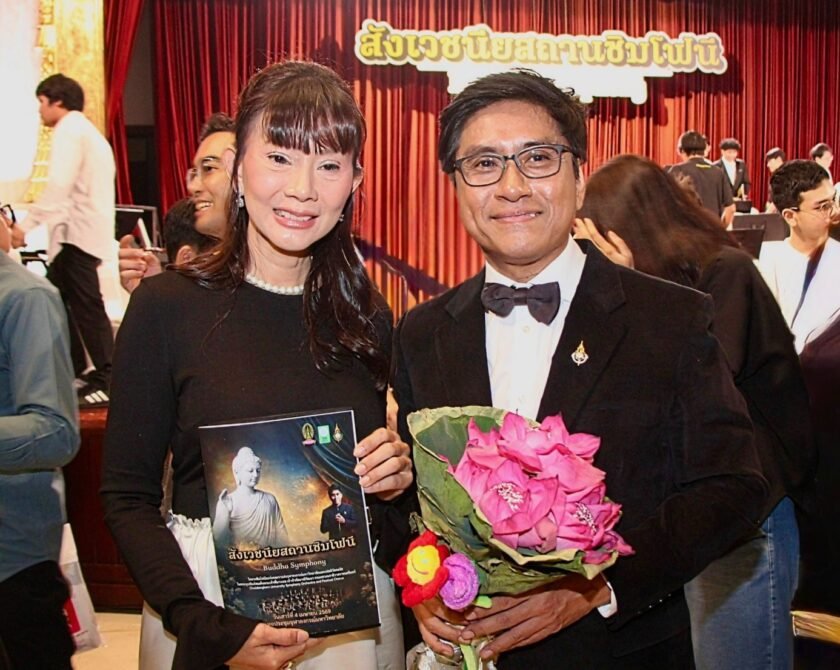 ด้าน คุณรัชดา สัทธาพงษ์ ประธานกรรมการ บริษัท โกลบอลพลัส อินเตอร์เทนเมนท์ เอเจนซี จำกัด ในฐานะผู้ร่วมสนับสนุนในการมอบของที่ระลึก กล่าวว่า“เรารู้สึกยินดีและภาคภูมิใจอย่างยิ่งที่ได้ร่วมสนับสนุนการแสดง ‘สังเวชนียสถานซิมโฟนี (Buddha Symphony)’ ซึ่งถือเป็นผลงานที่มีคุณค่าอย่างยิ่งต่อวงการศิลปะและวัฒนธรรมของไทย การนำเรื่องราวพุทธประวัติมาถ่ายทอดผ่านดนตรีในรูปแบบซิมโฟนี ไม่เพียงสะท้อนถึงความคิดสร้างสรรค์ แต่ยังเป็นการเชื่อมโยงศรัทธาเข้ากับศิลปะร่วมสมัยได้อย่างลงตัว เราเชื่อว่าผลงานลักษณะนี้จะมีบทบาทสำคัญในการผลักดัน Soft Power ของไทย และสามารถต่อยอดสู่เวทีระดับนานาชาติได้ในอนาคต”